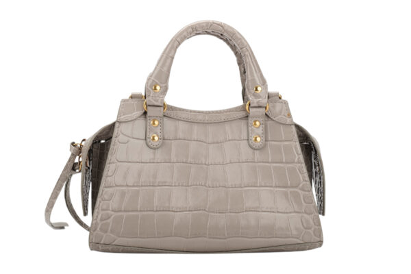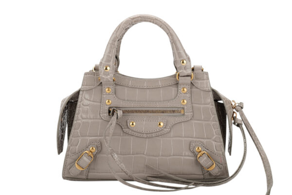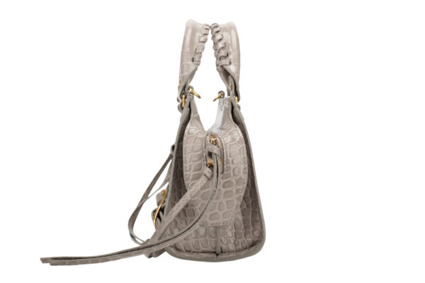 Balenciaga Neo Classic Crocodile Embossed Grey Leather bag, Gold Hardware