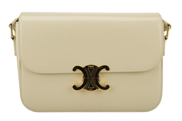 Celine Triomphe Limestone Beige Calfskin Leather Shoulder Bag, Gold Hardware