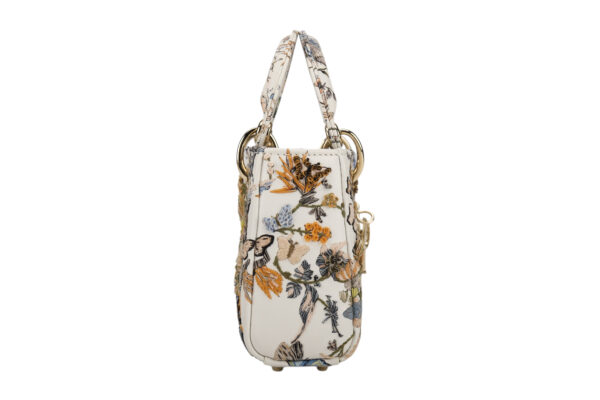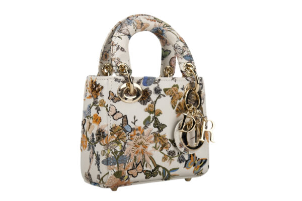 Dior Lady Dior Micro Flower Butterfly Motif White Embroidered Leather, Gold Hardware