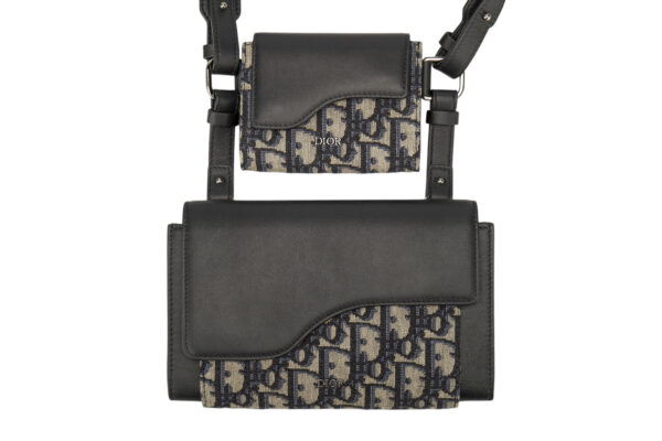 Dior Elite Dual Pouch Black Oblique Canvas, Ruthenium Hardware