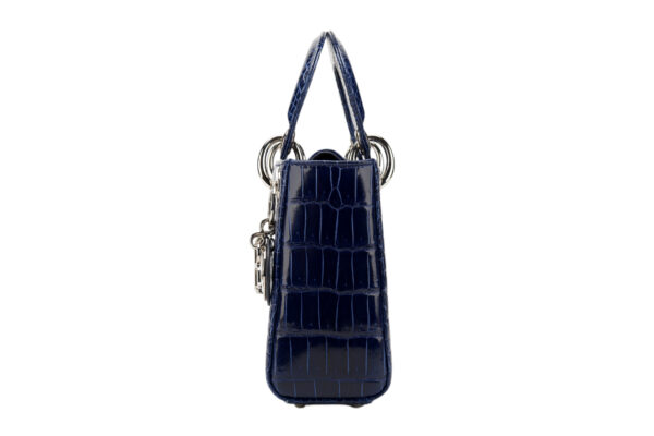 Dior Lady Dior Mini Navy Exotic Leather, Silver Hardware