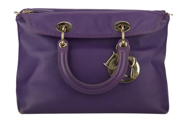 Dior Grandville Large Grained Purple Leather Handbag, Gold Hardware