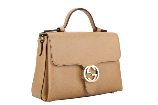 Gucci Interlocking GG Top Handle Bag Beige Leather, Gold Hardware