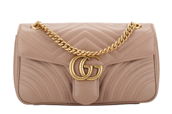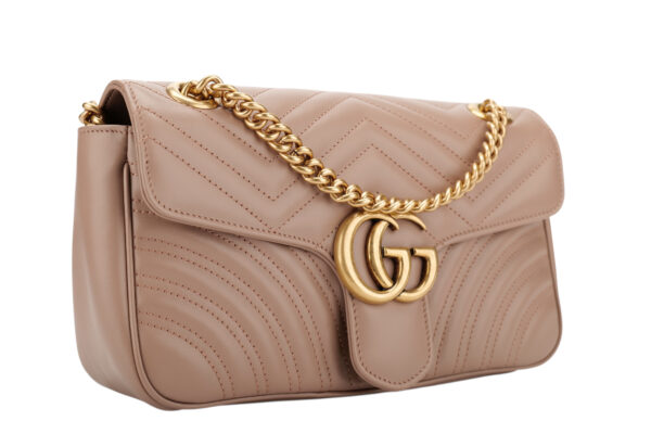£1,300.00Gucci Marmont Medium Beige Matelassé Leather Shoulder Bag, Gold HardwareNovember 18, 2025 -