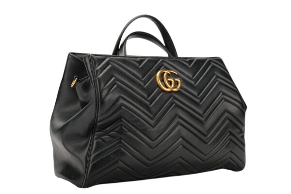 £1,399.00Gucci GG Marmont Medium Tote Bag Black Matelassé Leather, Gold Hardware December 12, 2025 -