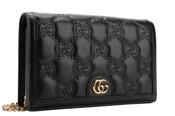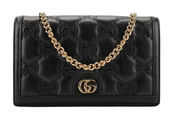 Gucci GG Matelasse Small Black Leather Chain Bag, Gold Hardware