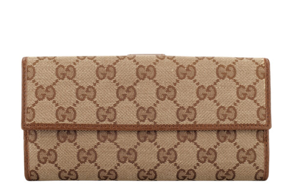 £799.00Gucci GG Supreme Monogram Beige Brown Canvas Long Wallet, Gold HardwareDecember 26, 2025 -