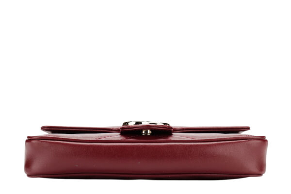Gucci Marmont Wallet On Chain (WOC) Burgundy Leather Matelasse, Gold Hardware