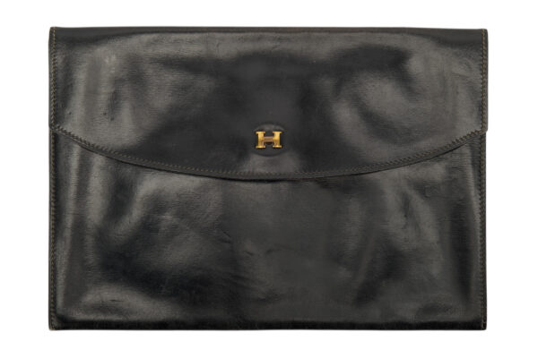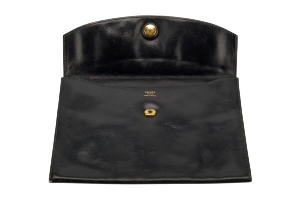 Hermes Vintage Rio Clutch Smooth Black Leather, Gold Hardware