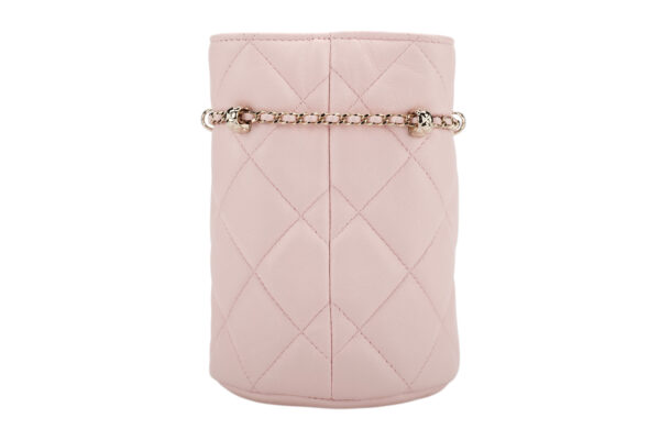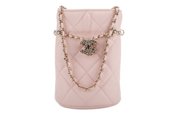 Chanel Mini Bucket Blush Pink Diamond Quilted Lambskin Leather, Gold hardware