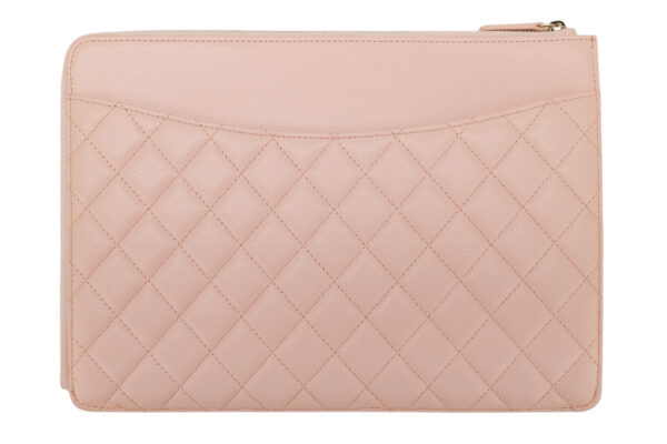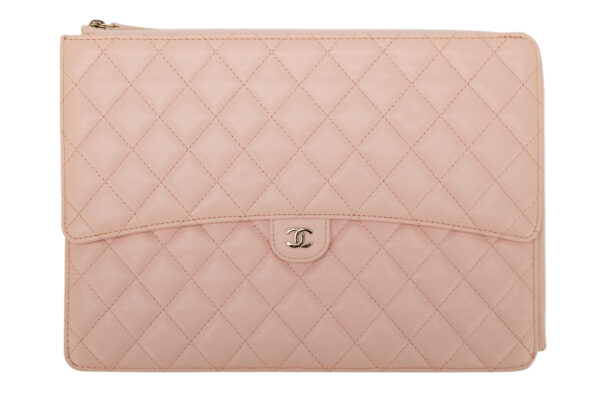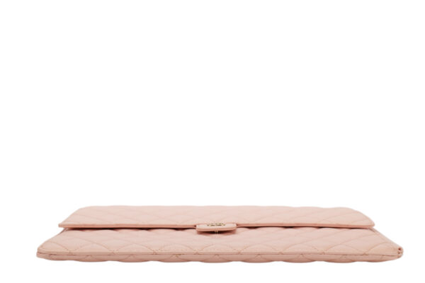 Chanel Classic Pink Caviar Quilted Leather Clutch, Gold Hardware