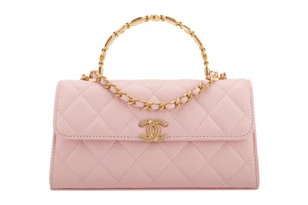 Chanel Long Wallet on Chain (WOC) Top Handle Bag Pink Quilted Lambskin, Gold Hardware