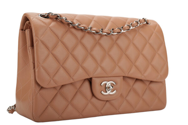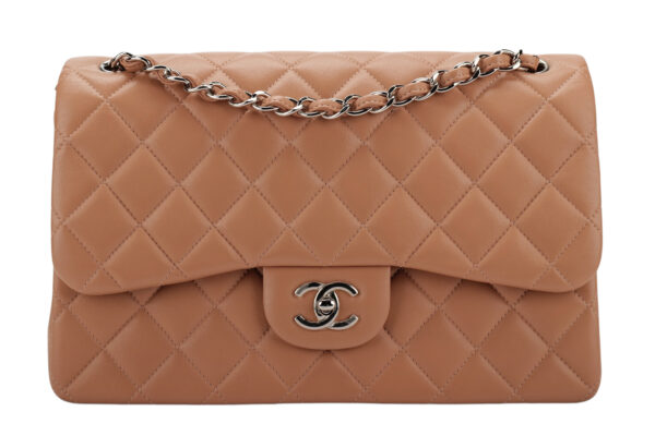 Chanel Classic Jumbo Double Flap Beige Lambskin Quilted Leather, Silver Hardware