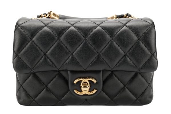 Chanel Mini Square Classic Flap bag, Black Quilted leather, Gold Hardware