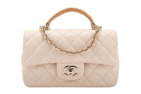 Chanel Classic Top Handle Rectangle Flap Bag Blush Quilted Leather, Silver hardware