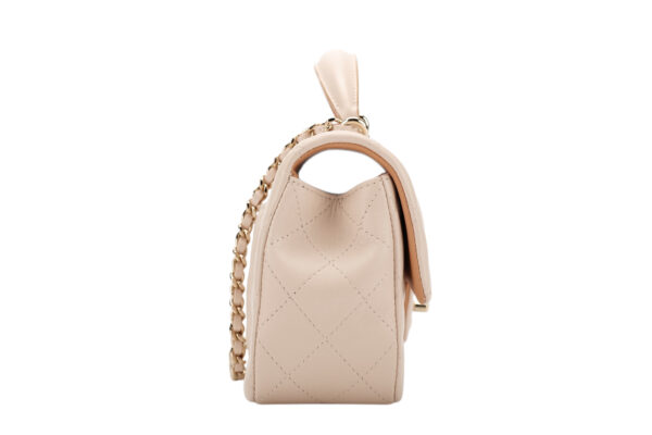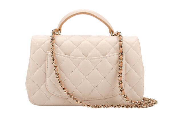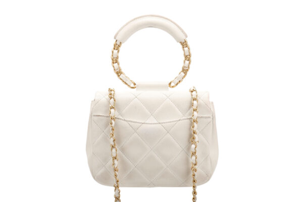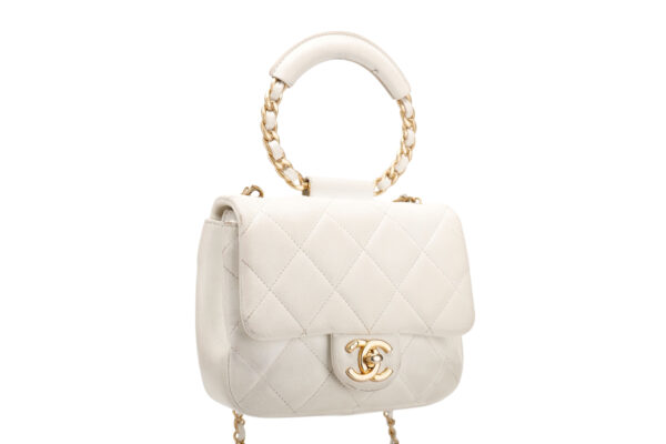 Chanel Mini Flap Top Handle White Quilted Leather, Gold Hardware