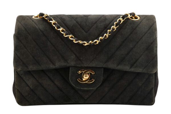 £3,499.00Chanel Classic Medium Chevron V-Stitch Black Suede Flap Bag, Gold HardwareDecember 20, 2025 -