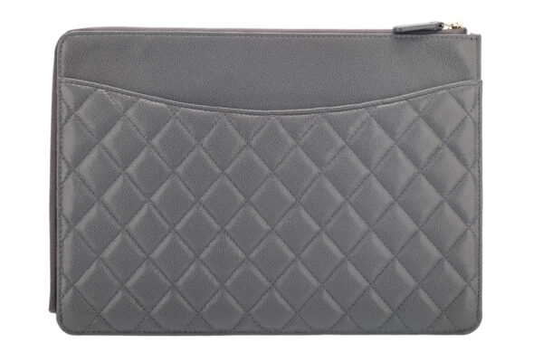 Chanel Lambskin Chevron Medallion Grey Clutch, Gold Hardware