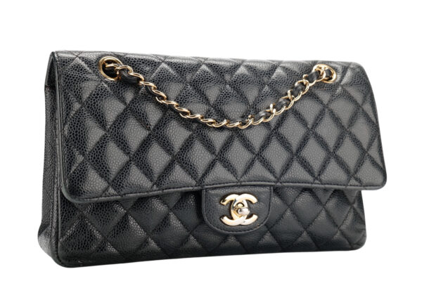 £3,099.00Chanel Classic Medium Double Flap Black Caviar Leather, Gold HardwareDecember 13, 2025 -
