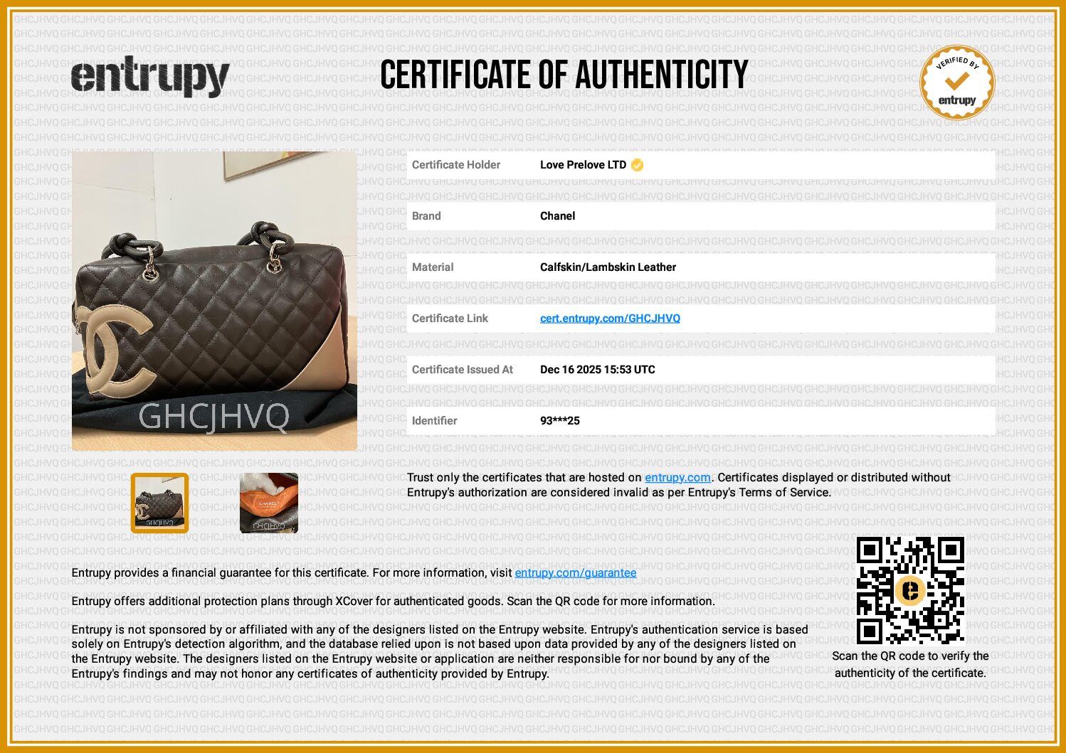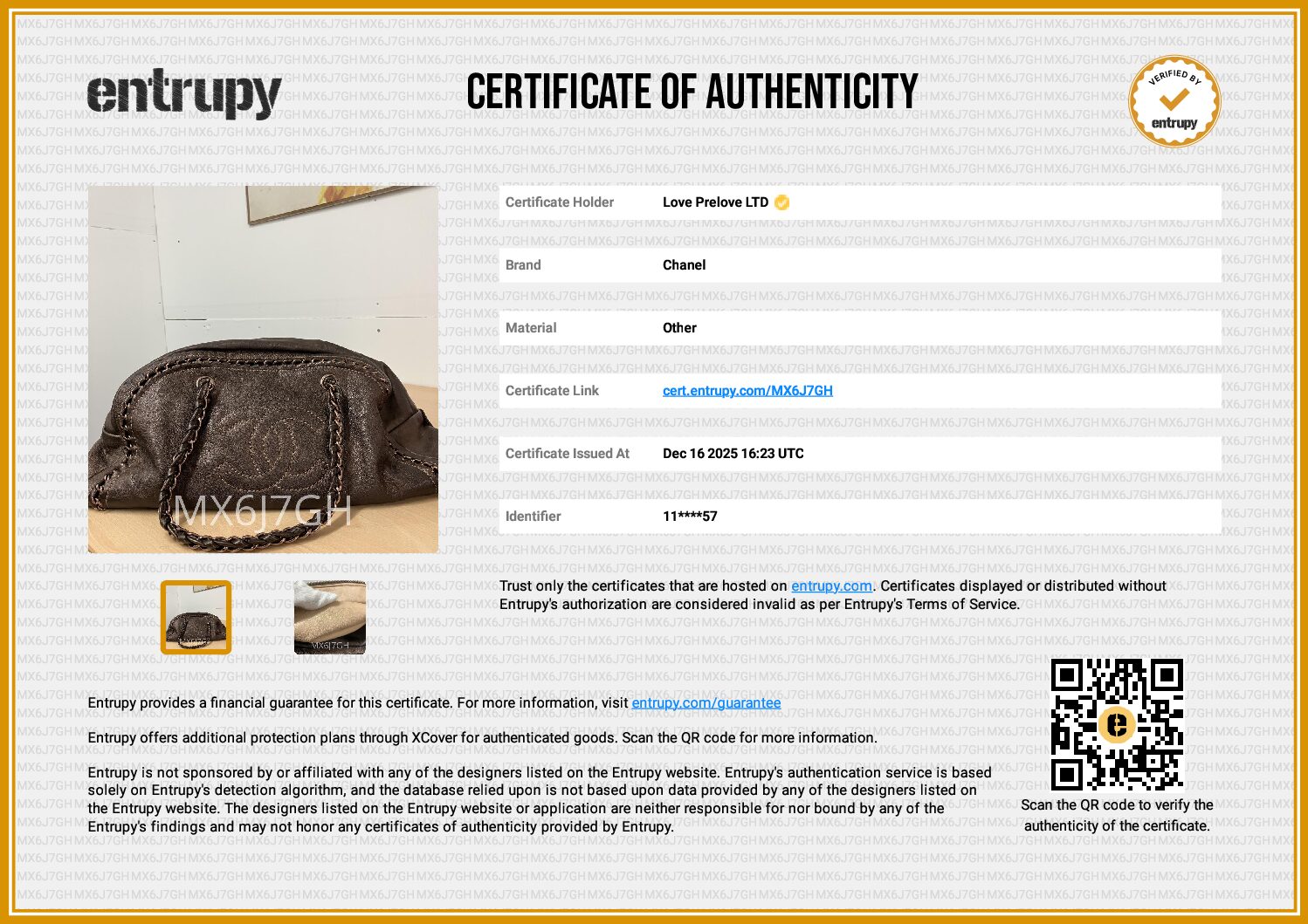 £3,699.00Chanel Luxe Ligne Bowler Brown bag, Bronze HardwareDecember 27, 2025 -