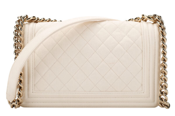 Chanel Boy Bag Medium Ivory Quilted Leather, Champagne Gold HardwareÂ