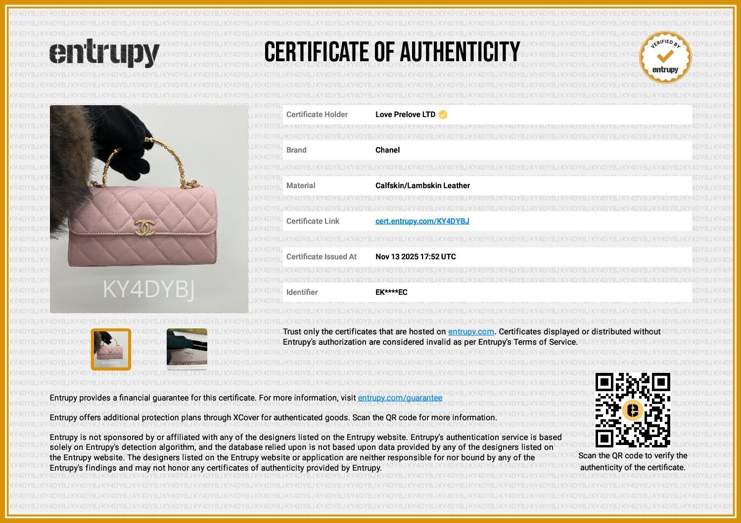 £3,000.00Chanel Long Wallet on Chain (WOC) Top Handle Bag Pink Quilted Lambskin, Gold HardwareNovember 22, 2025 -