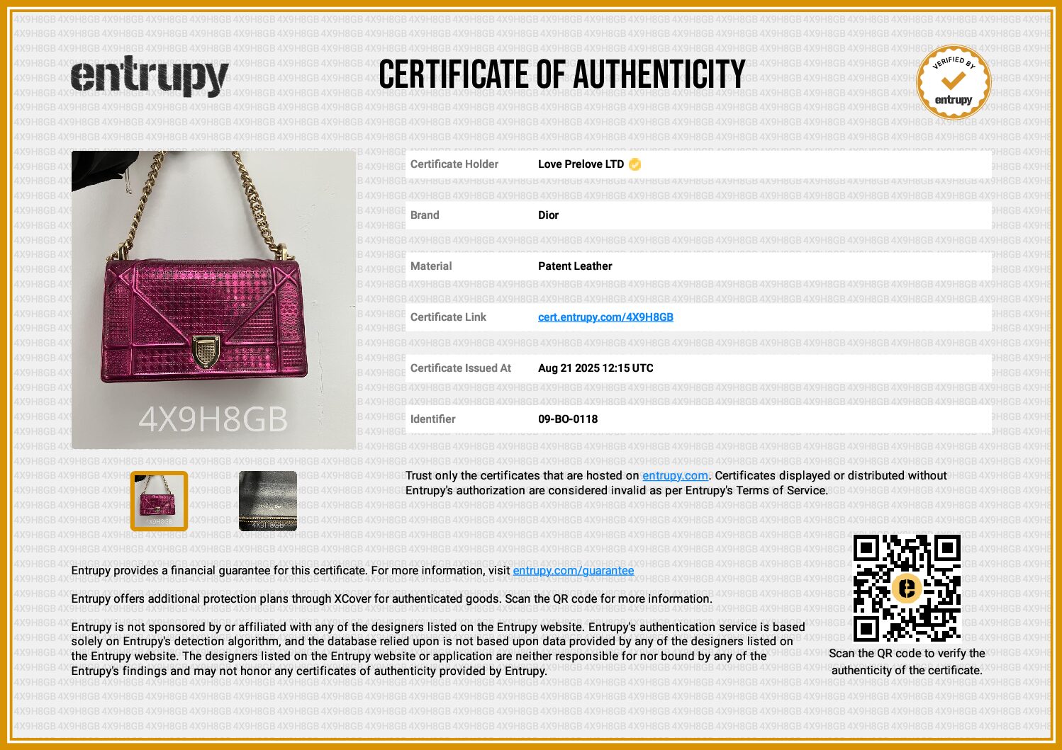 £1,200.00Dior Diorama Small Metallic Pink Microcannage Leather, Gold HardwareSeptember 4, 2025 -