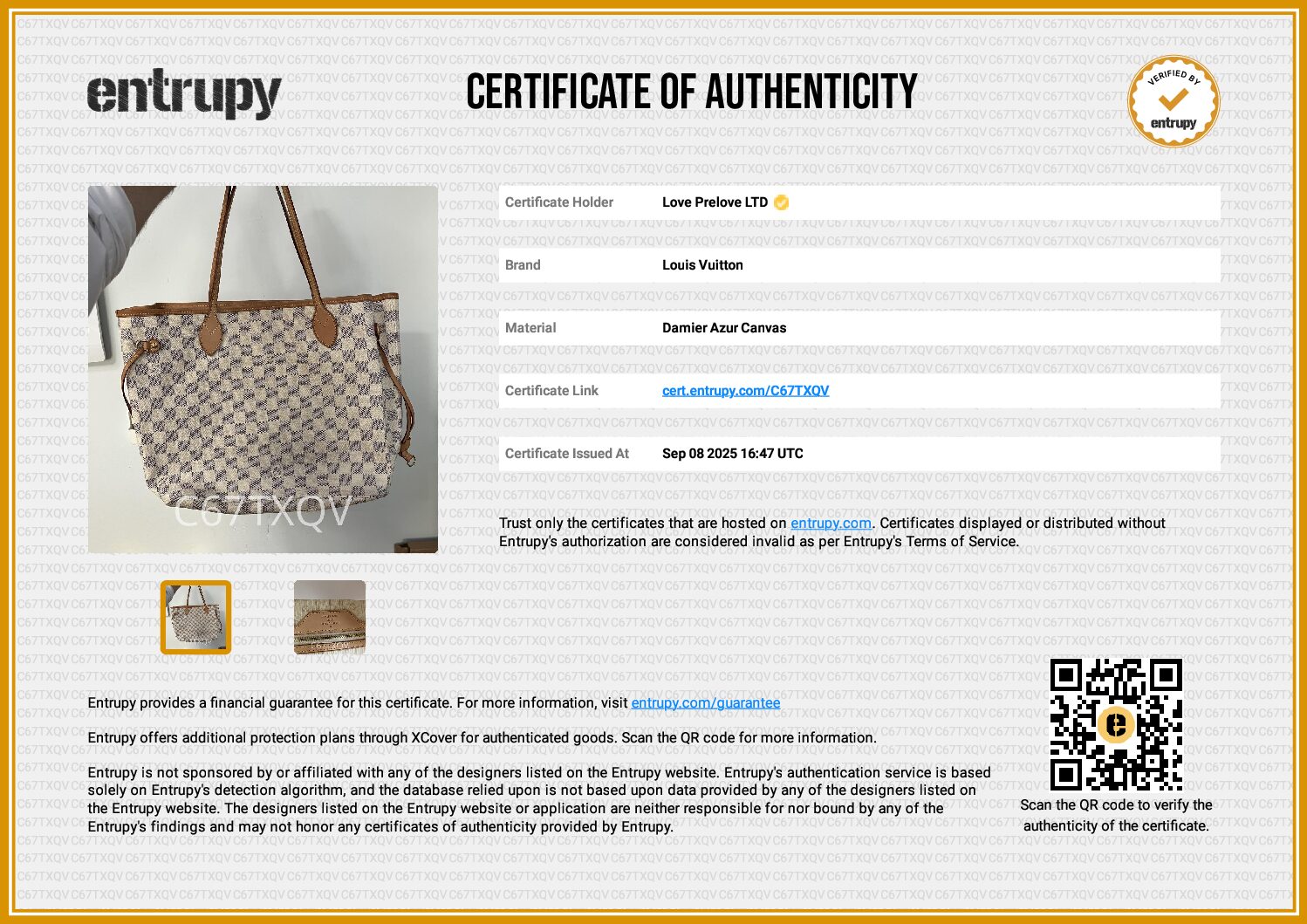 £1,400.00Louis Vuitton Vintage Neverfull MM Damier Azur Canvas, Gold HardwareSeptember 7, 2025 -