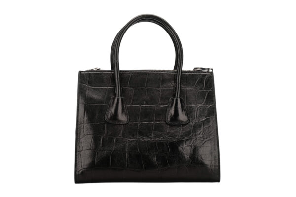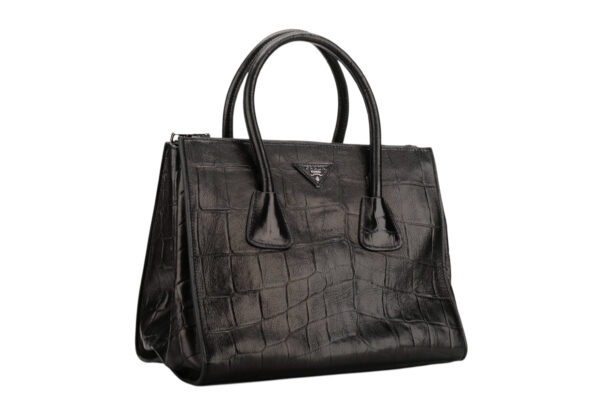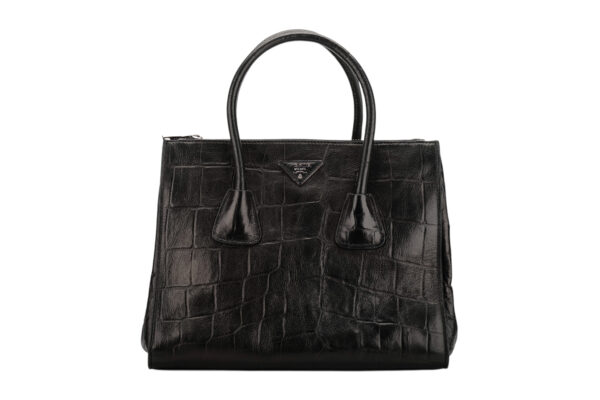 Prada Black Crocodile Embossed Tote, Silver Hardware