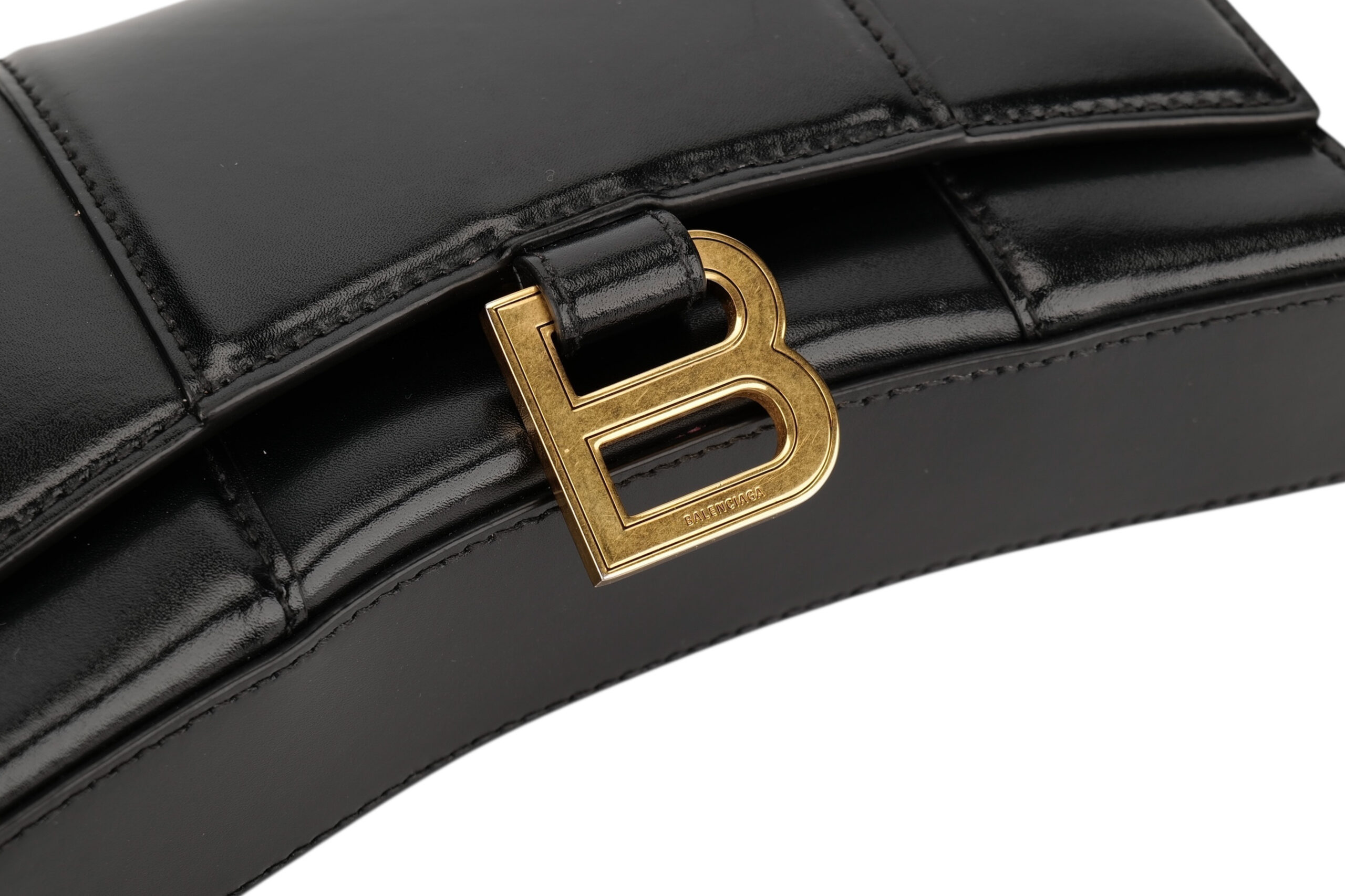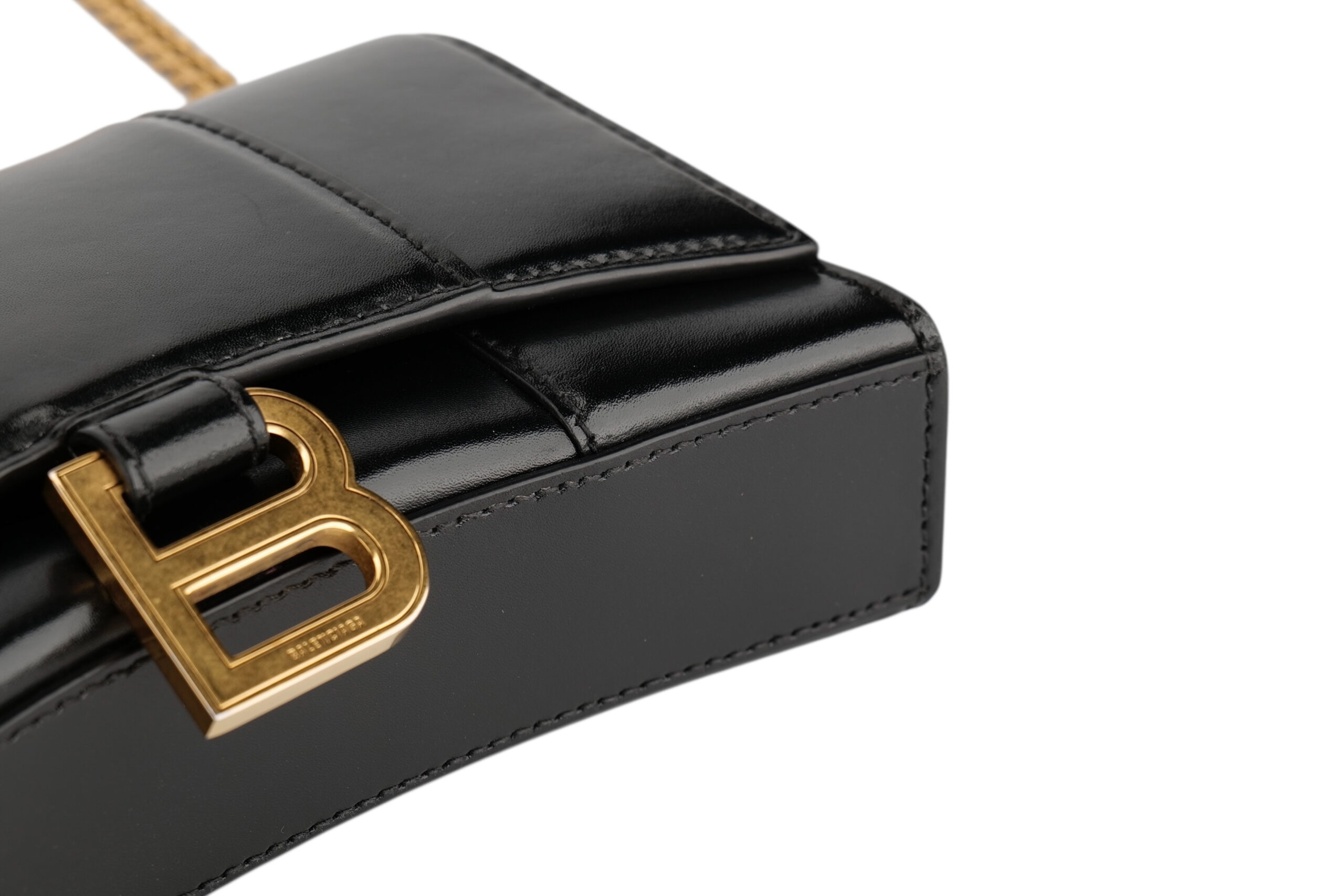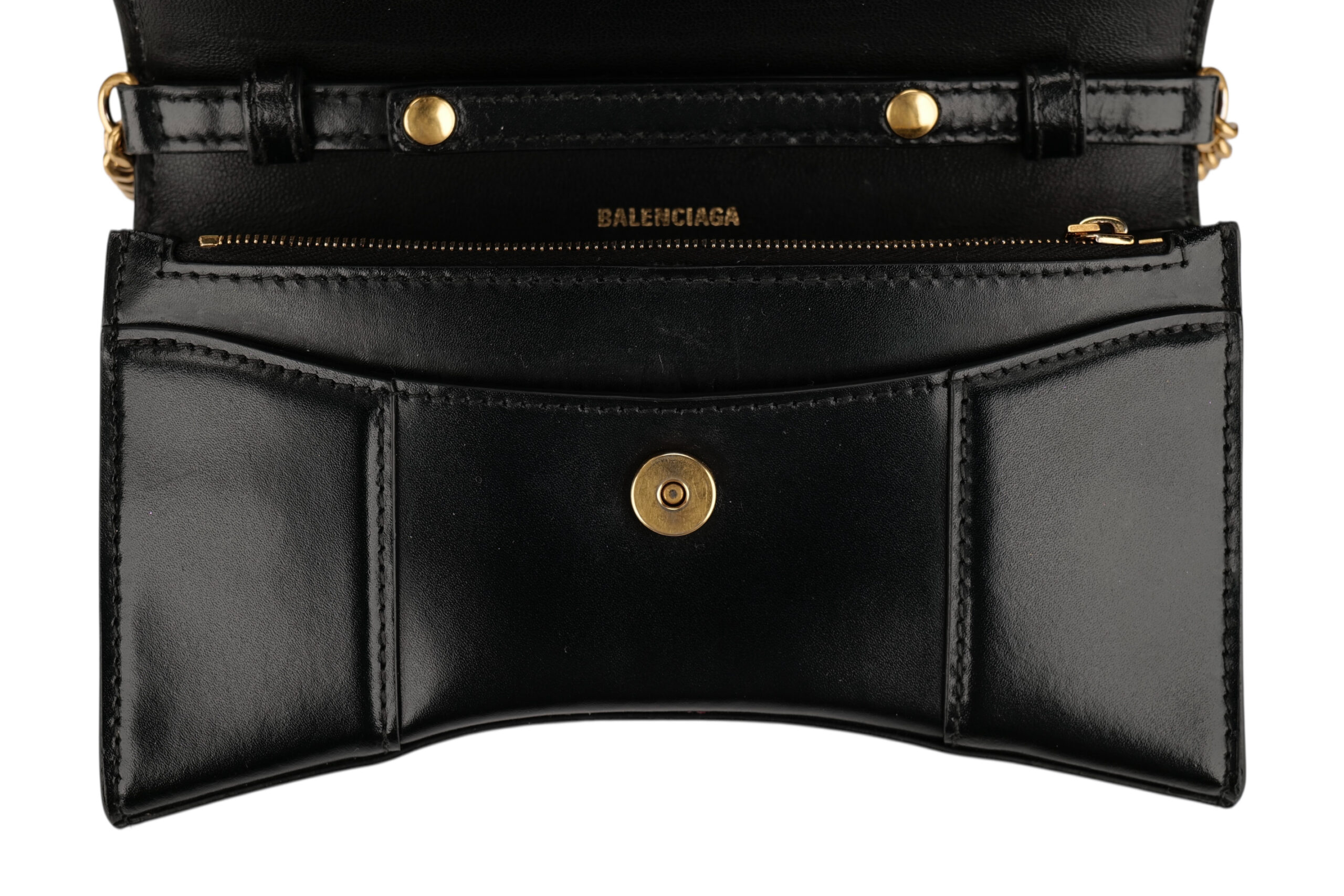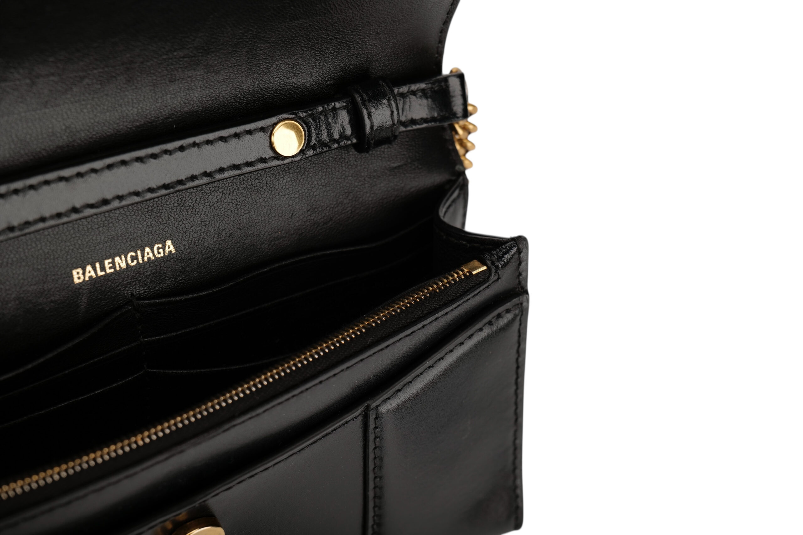 Balenciaga Hourglass Wallet on Chain, Black Leather, Gold Hardware