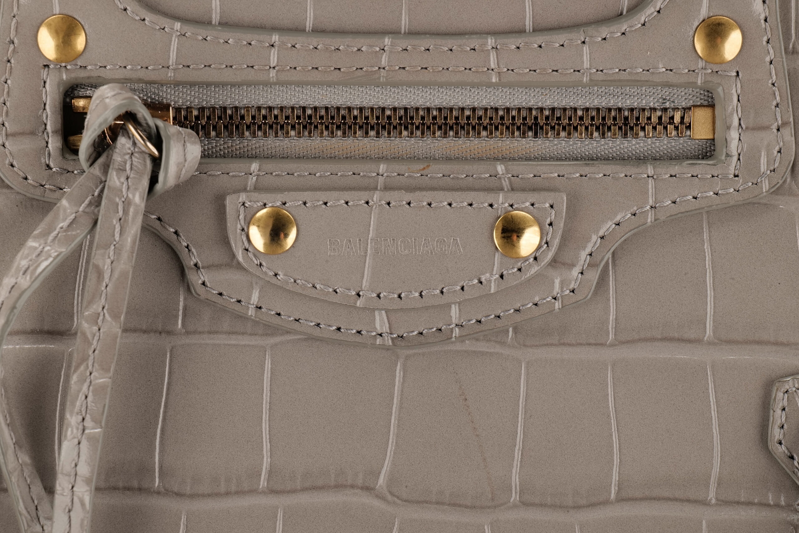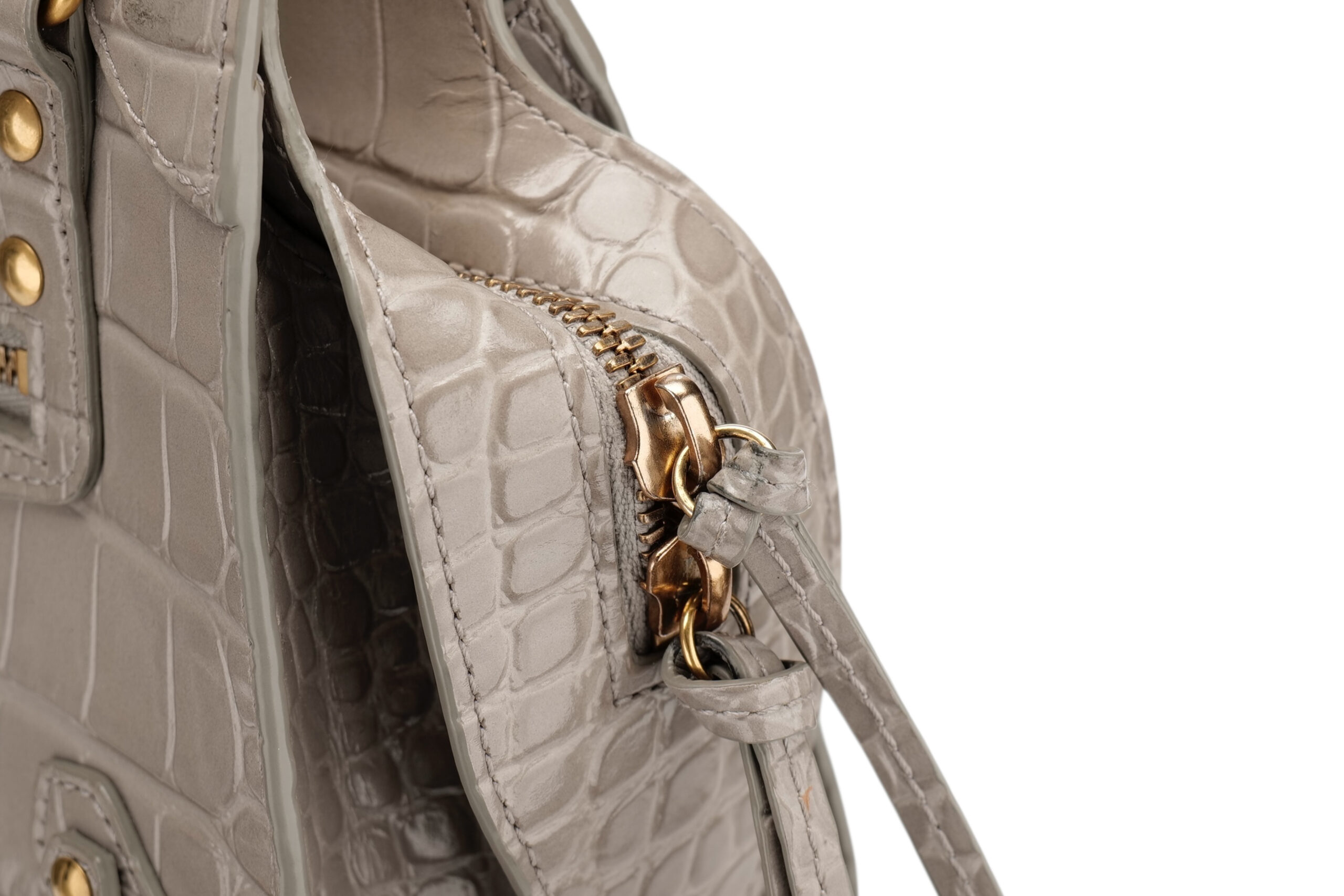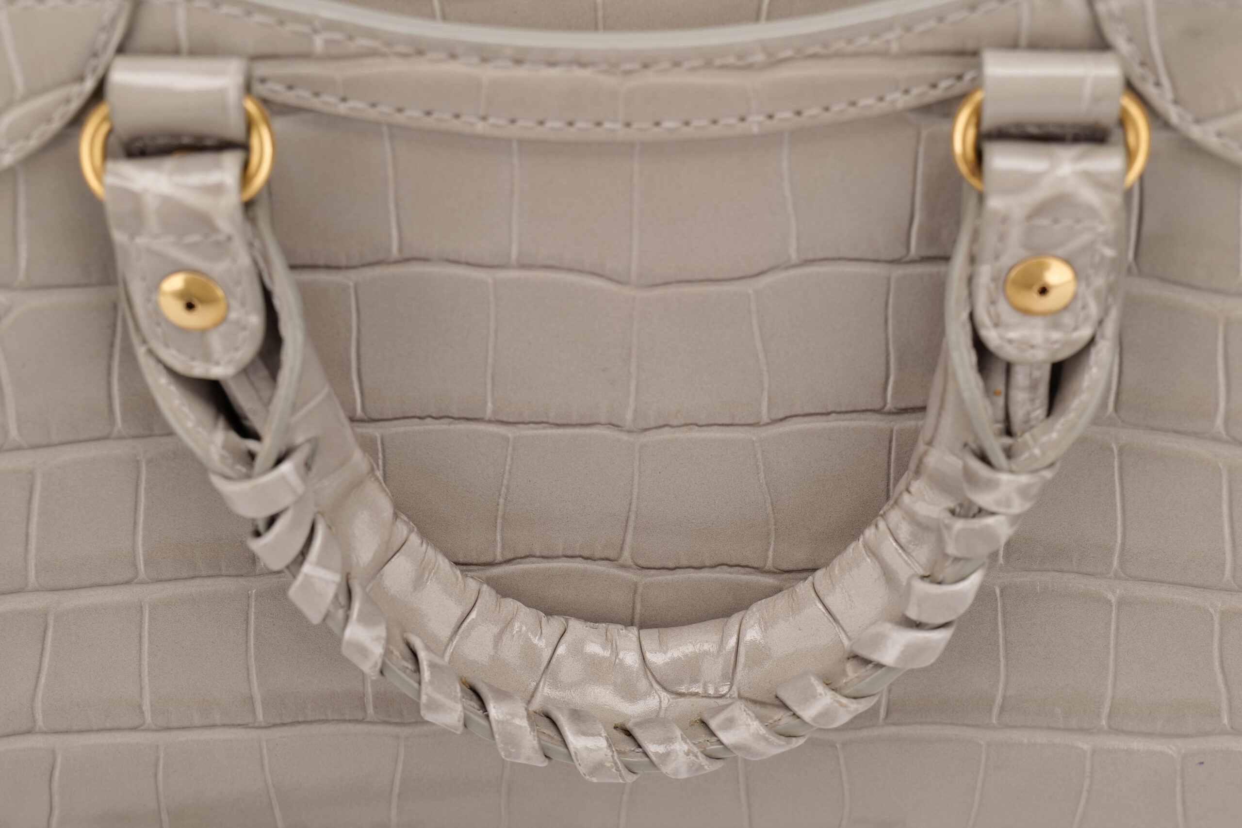 Balenciaga Neo Classic Crocodile Embossed Grey Leather bag, Gold Hardware