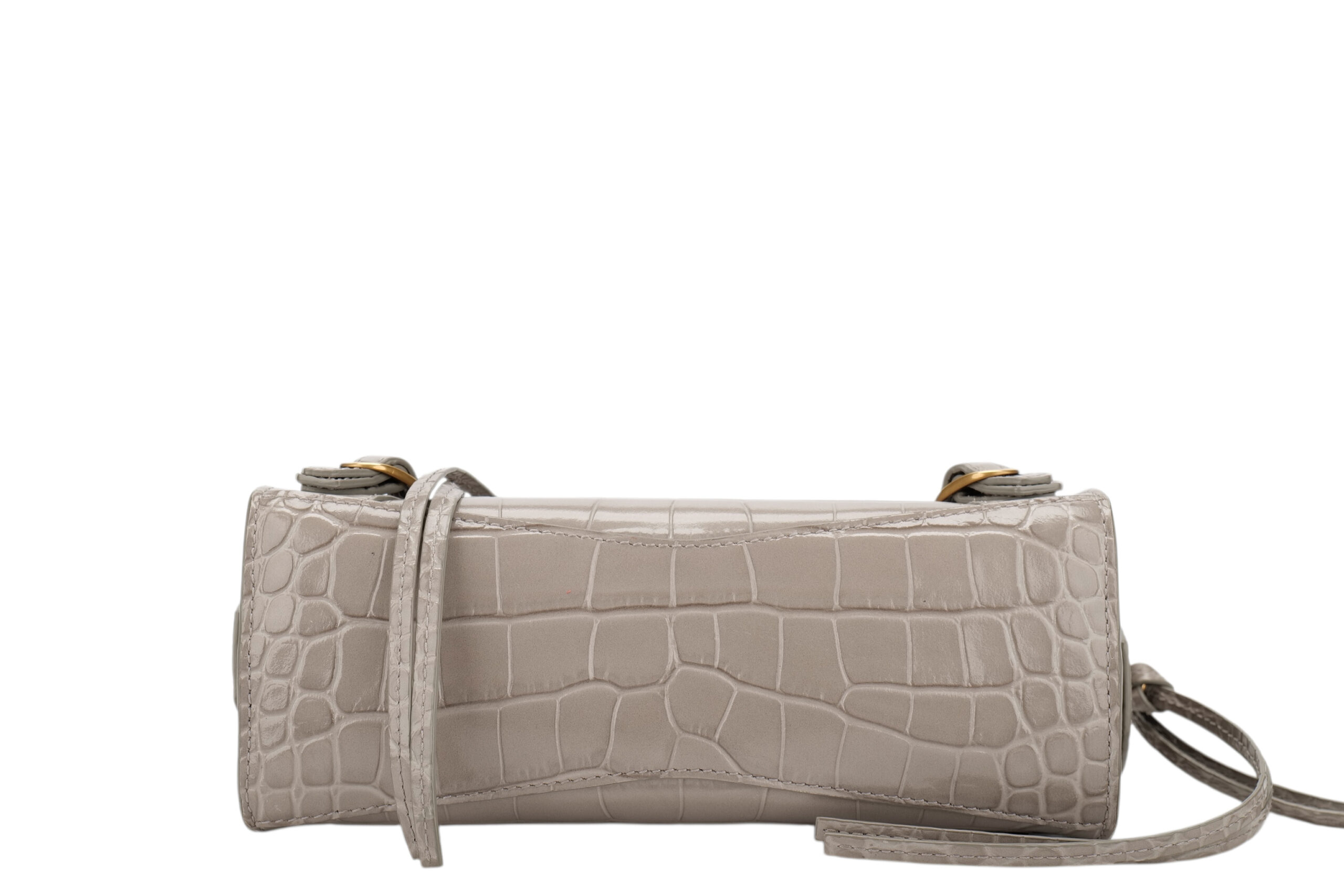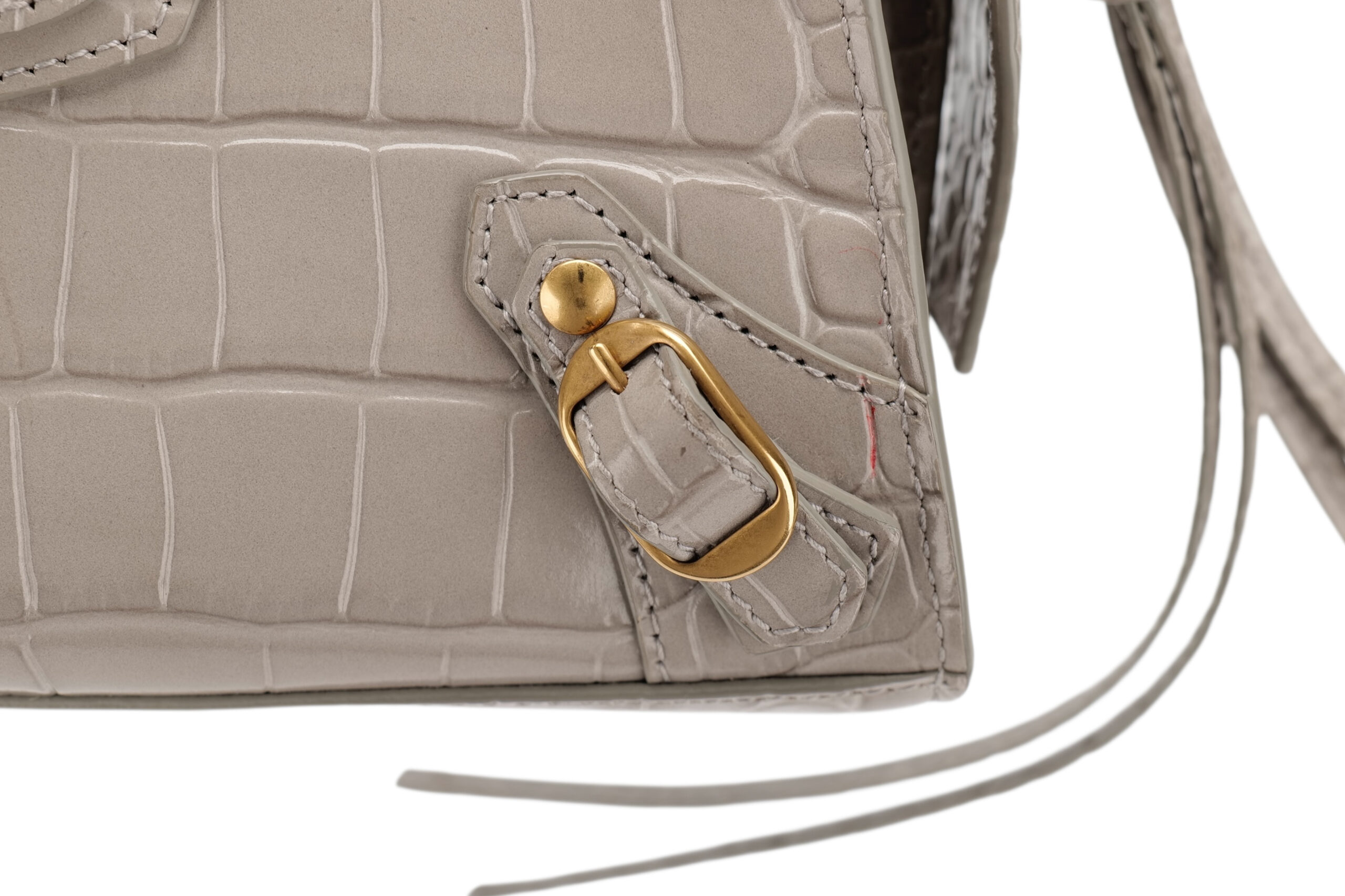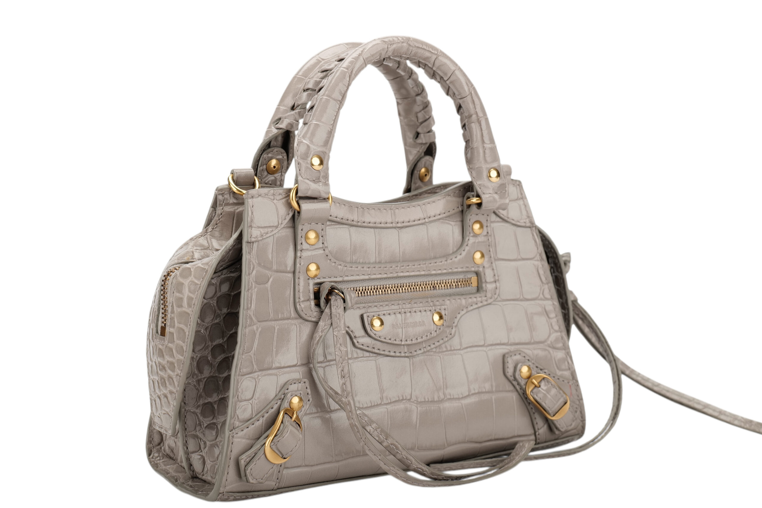 Balenciaga Neo Classic Crocodile Embossed Grey Leather bag, Gold Hardware