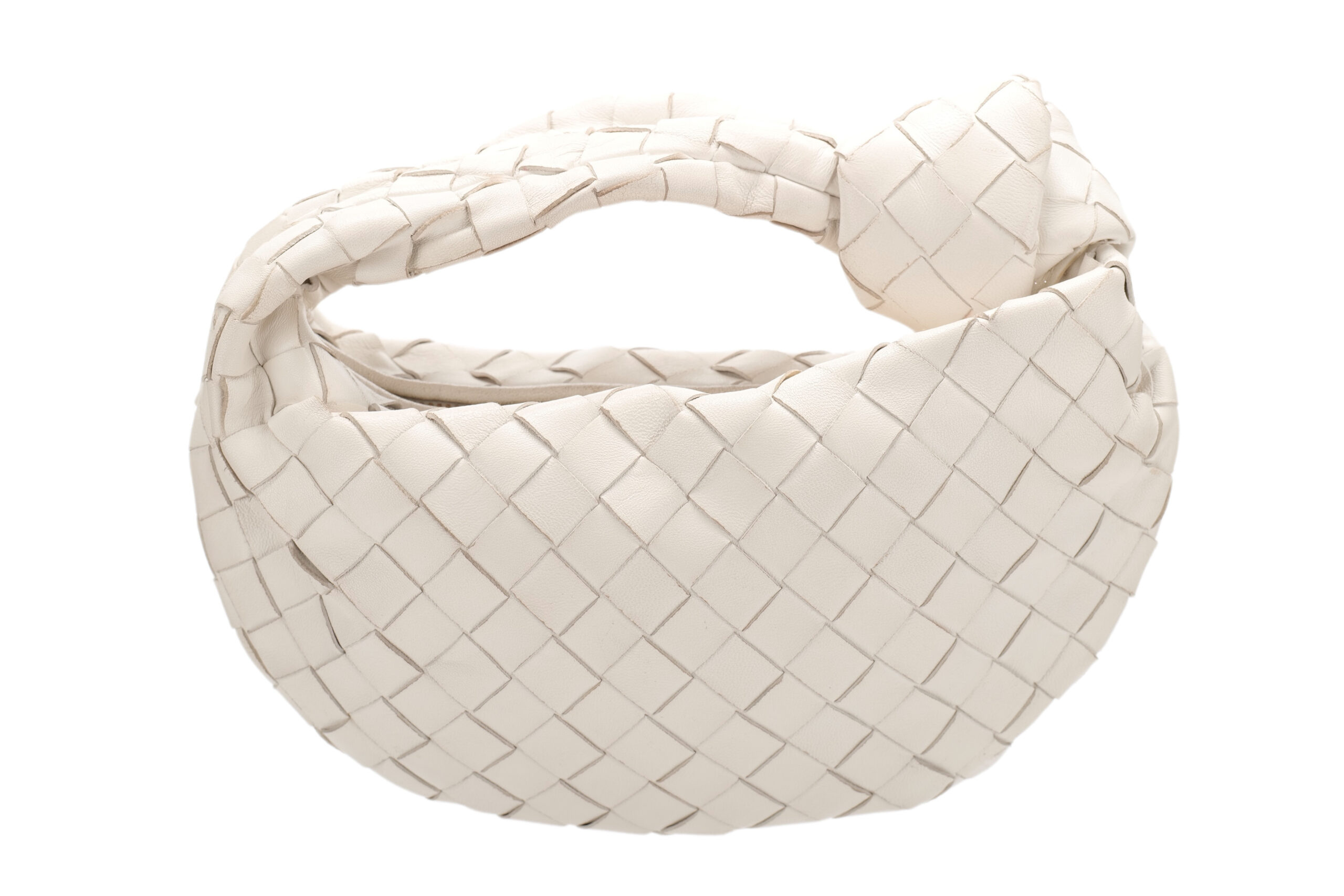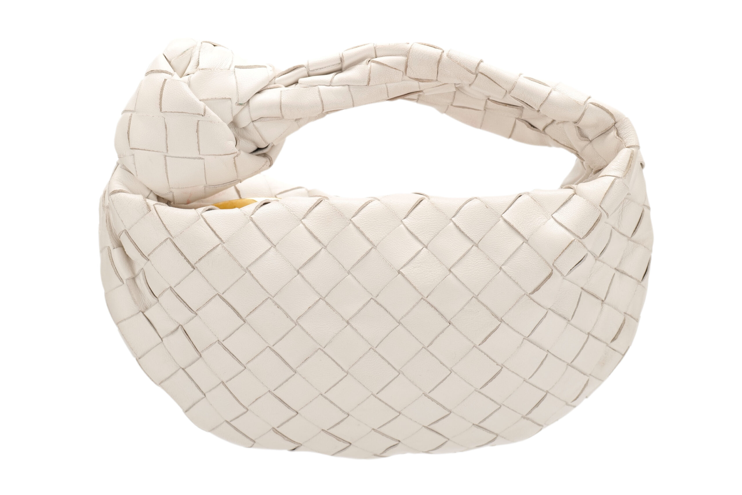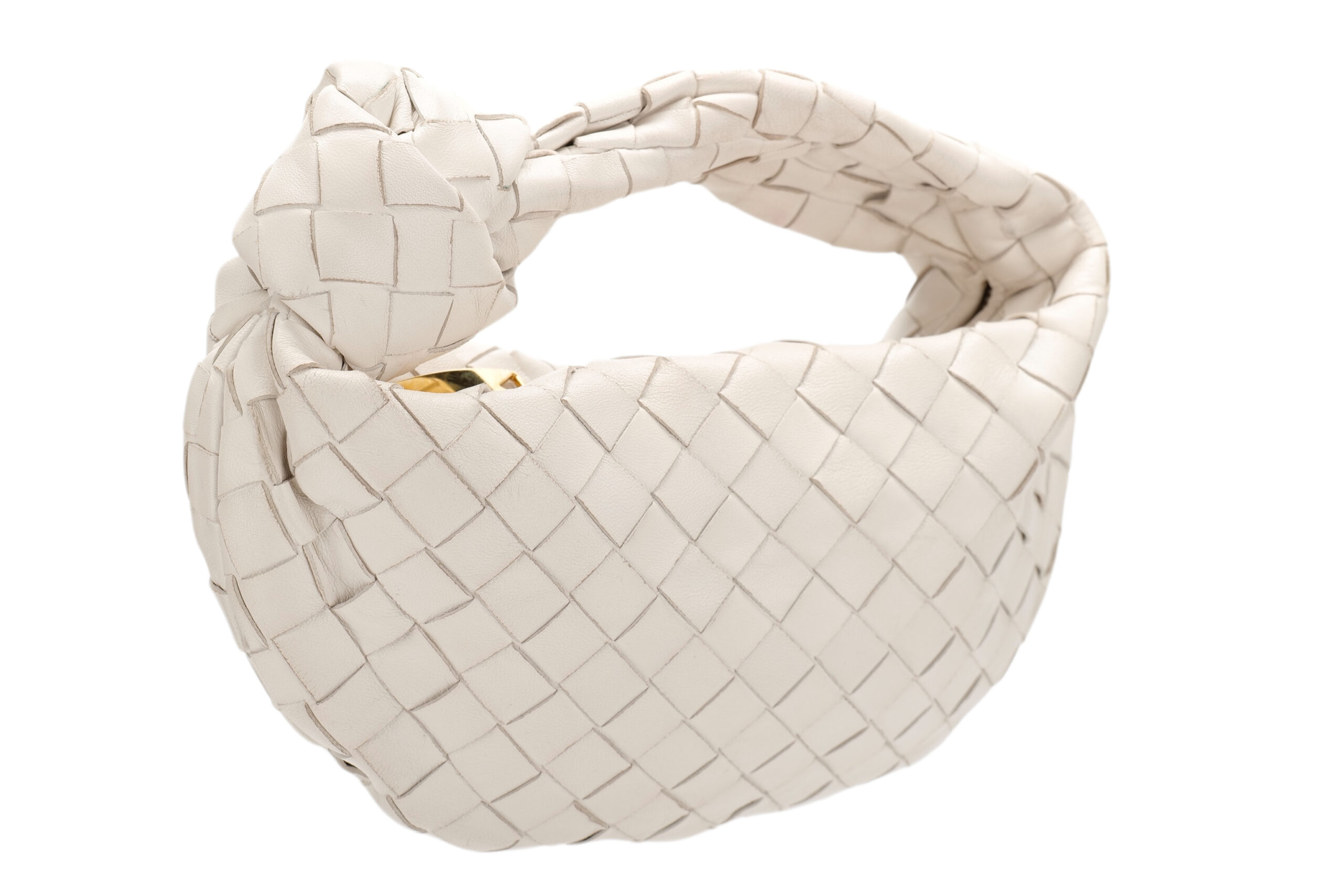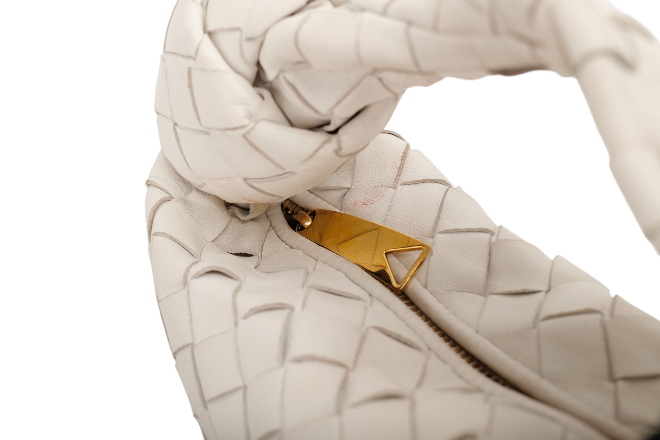 Bottega Veneta Mini Jodie White Intrecciato Leather, Gold Hardware