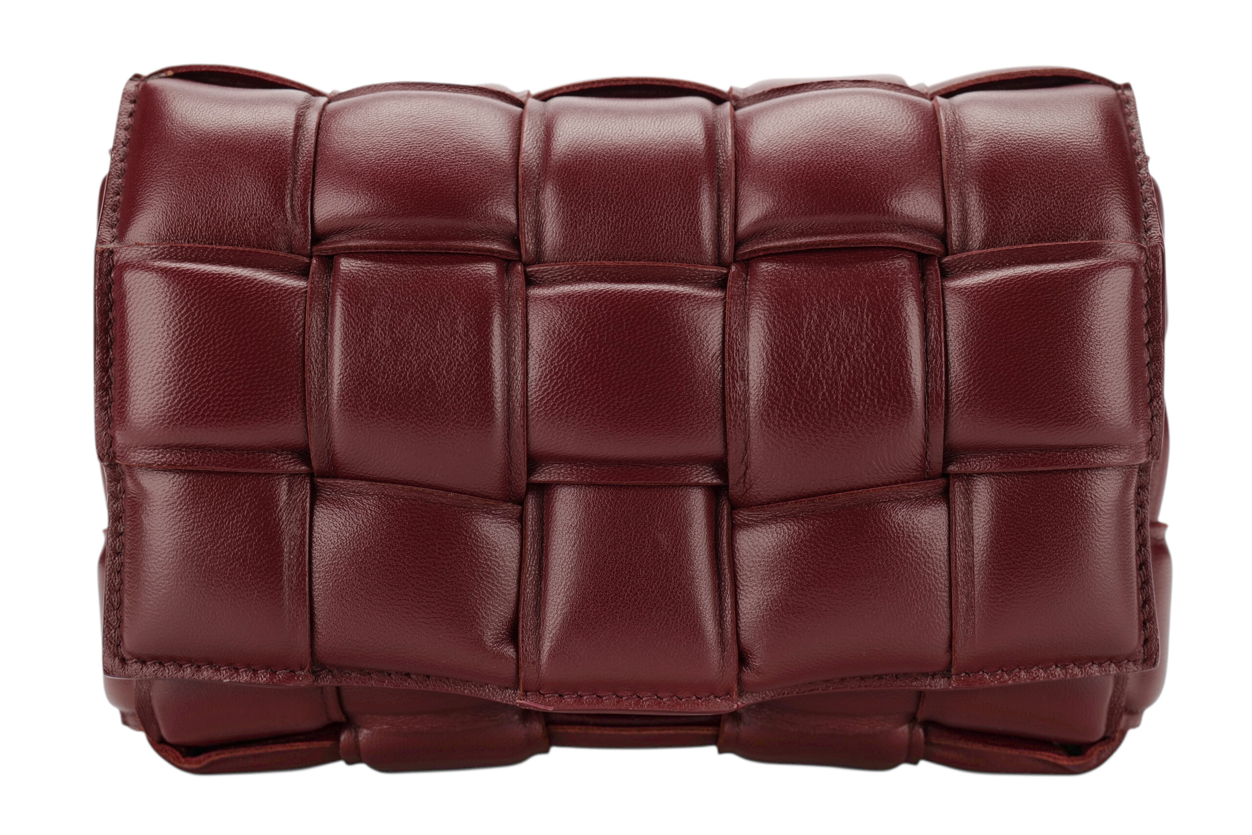 Combining traditional Italian craftsmanship with contemporary, cutting-edge design techniques, Bottega Veneta has become one of the ‘it’ brands of the 21st century. One of the brand’s signature pieces, the Cassette bag, has become a defining style of modern, quiet luxury. Features Bottega’s iconic intreccio structure consisting here of regal burgundy woven padded leather panels and featuring gold-toned hardware, adjustable shoulder strap and a concealed magnetic closure.Â