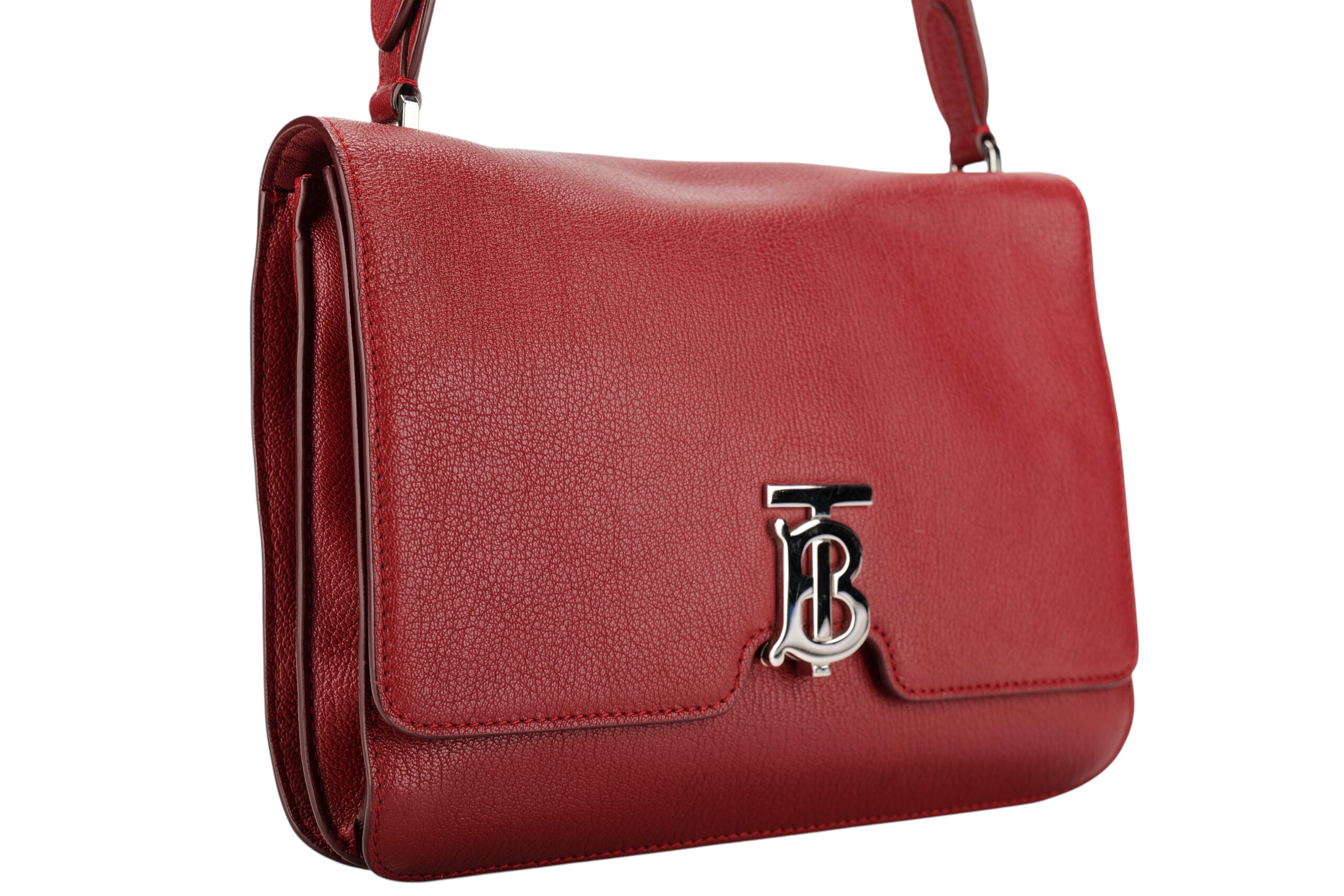 Burberry MD TB Red Leather Shoulder Bag, Silver Hardware