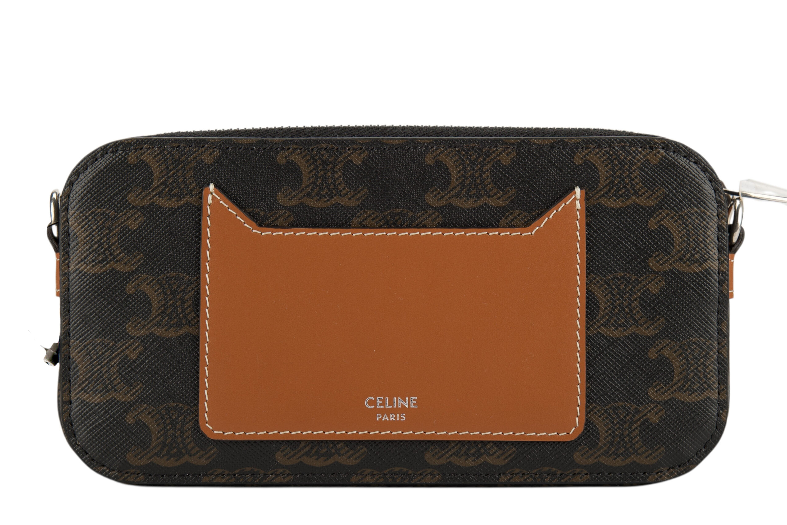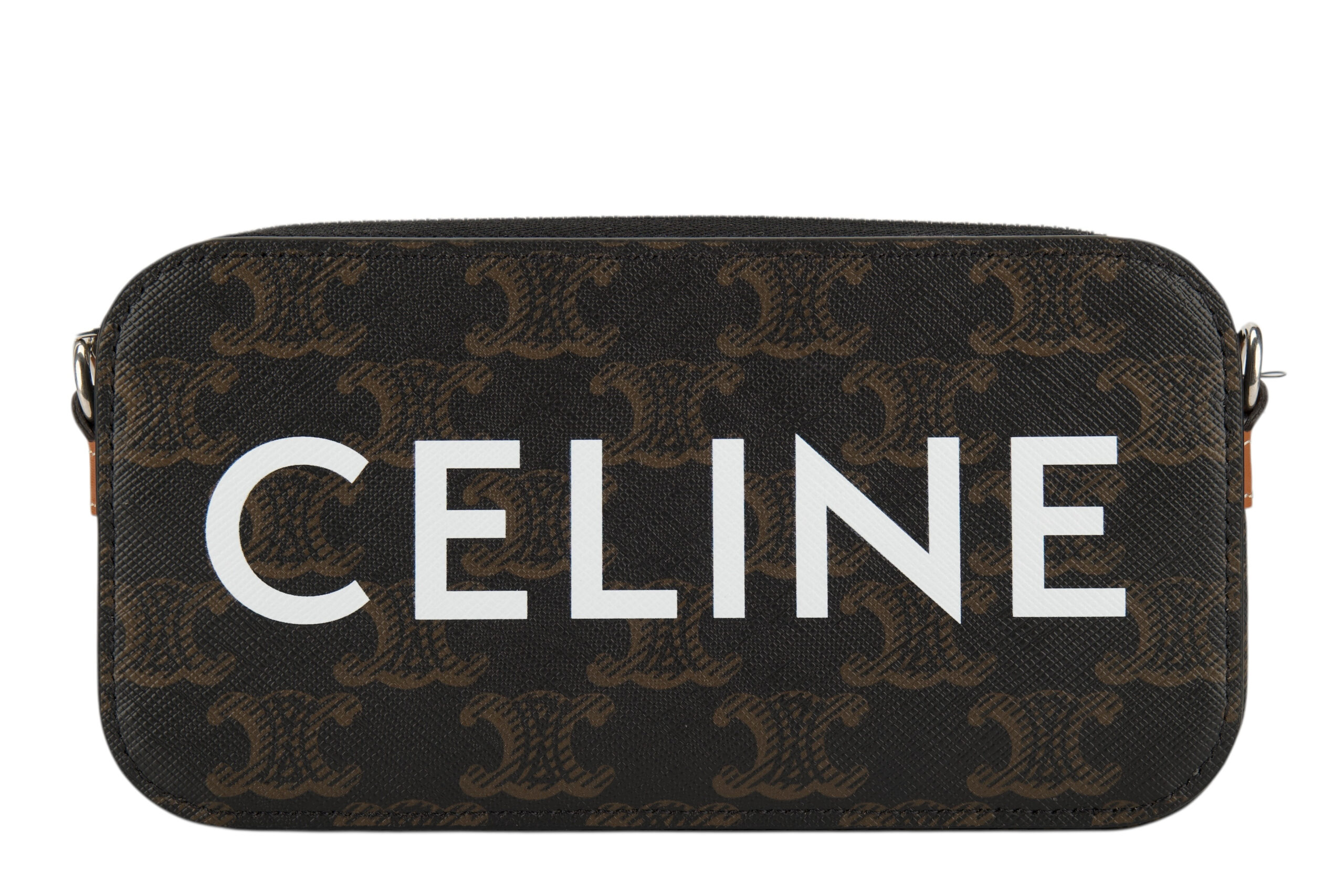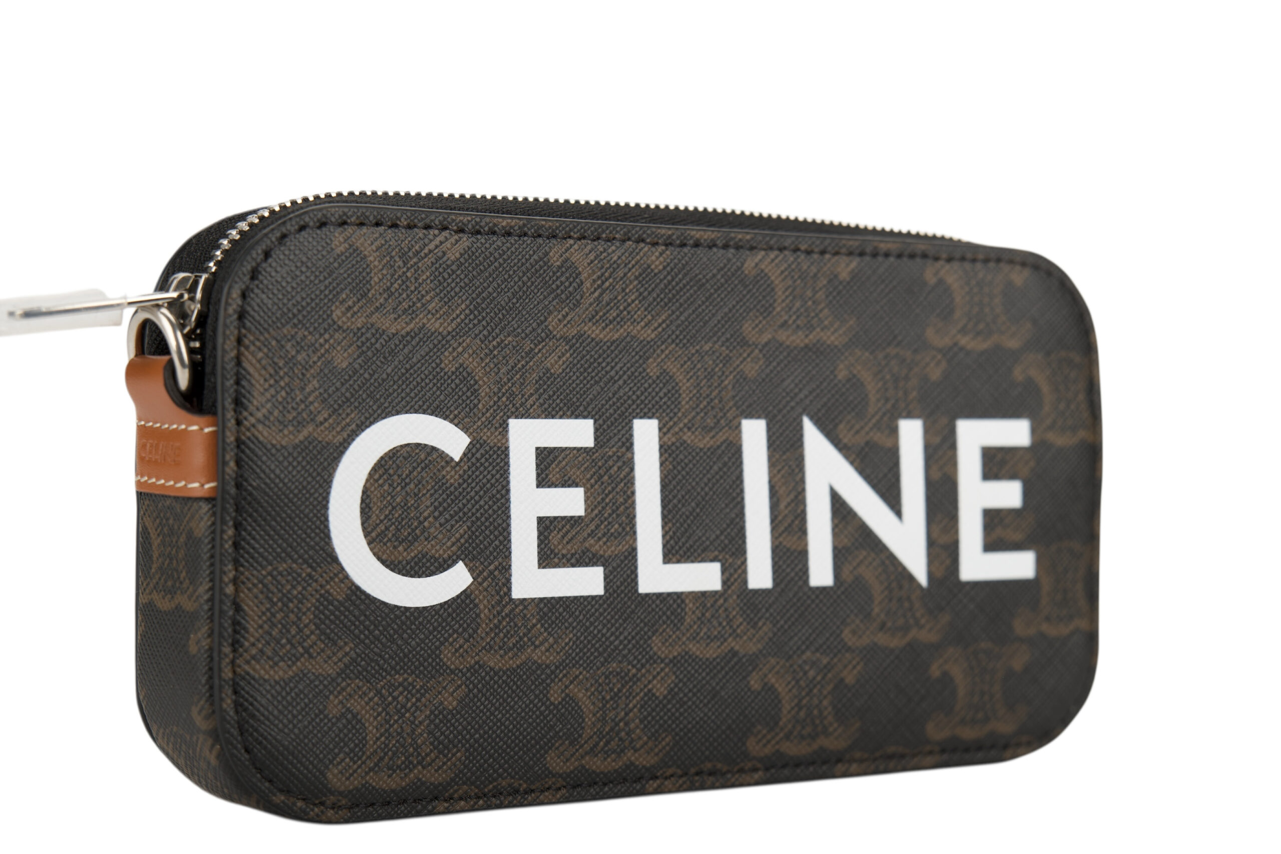The Celine Horizontal Pouch in Triomphe Canvas perfectly captures the brand’s refined Parisian aesthetic blended with effortless modernity. Crafted from durable coated canvas adorned with the iconic Triomphe motif — a symbol rooted in Celine’s heritage — this pouch exudes understated luxury. The bold white “CELINE” logo brings a contemporary graphic touch, contrasting beautifully against the rich brown background. Sleek and structured, its horizontal silhouette makes it ideal for carrying daily essentials or serving as a minimalist clutch for on-the-go sophistication.