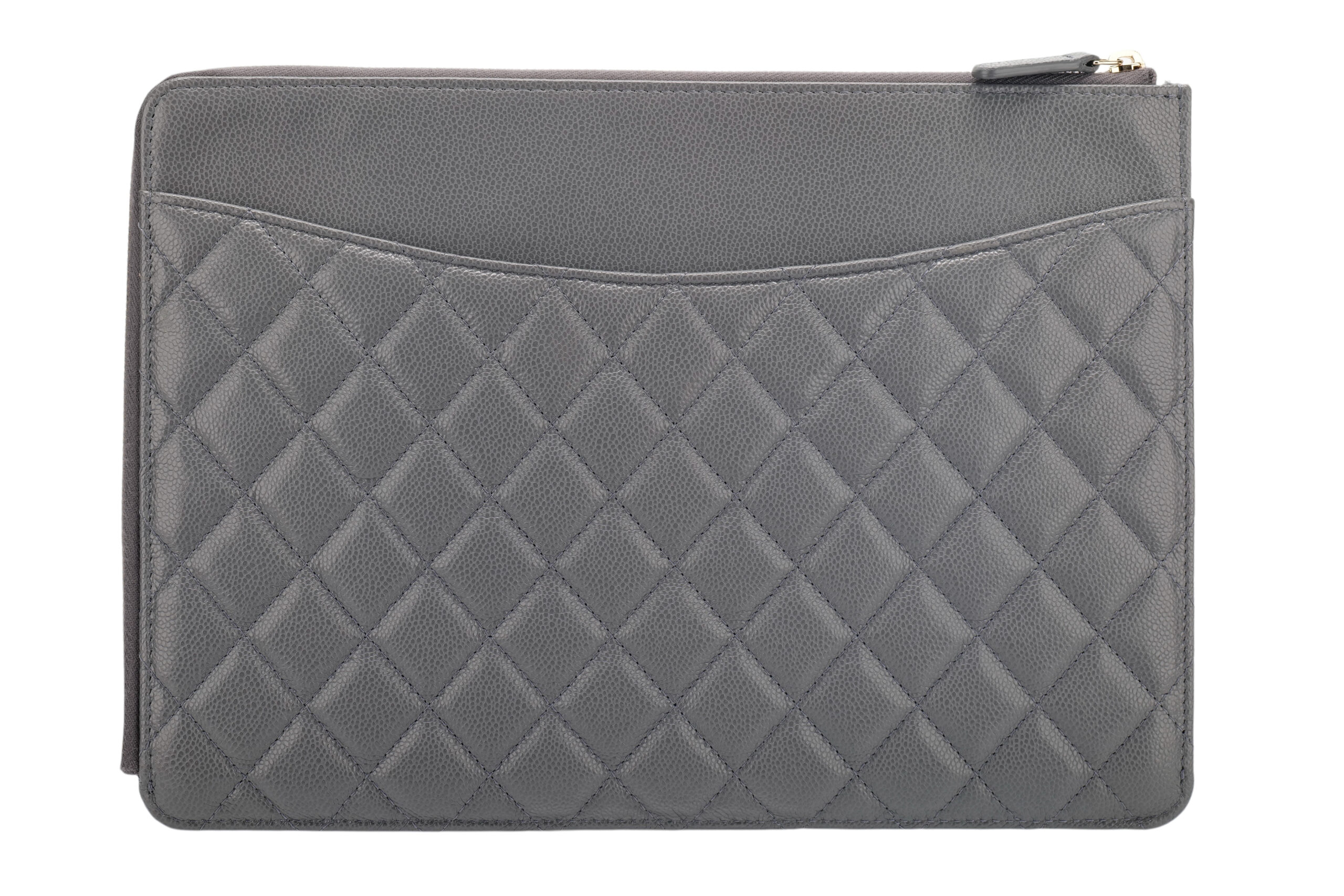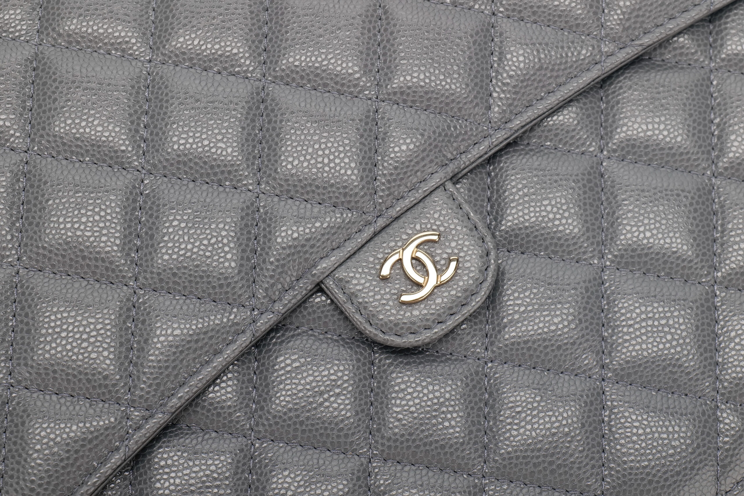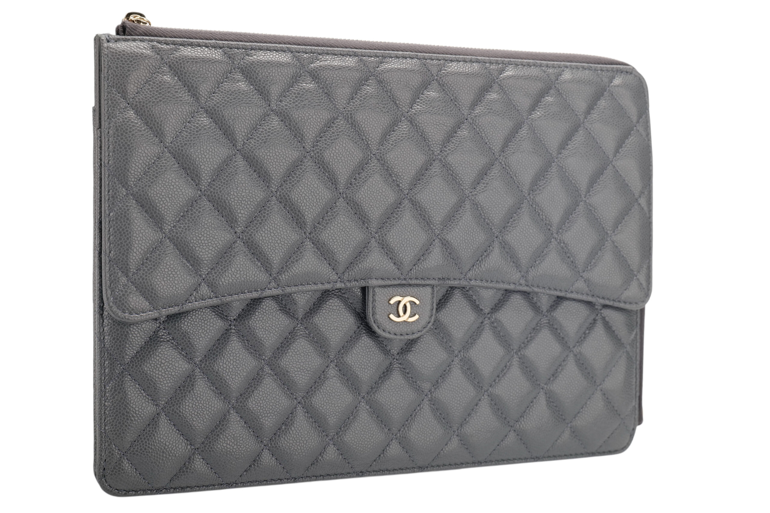Chanel Classic Grey Caviar Quilted Leather Clutch, Gold Hardware
