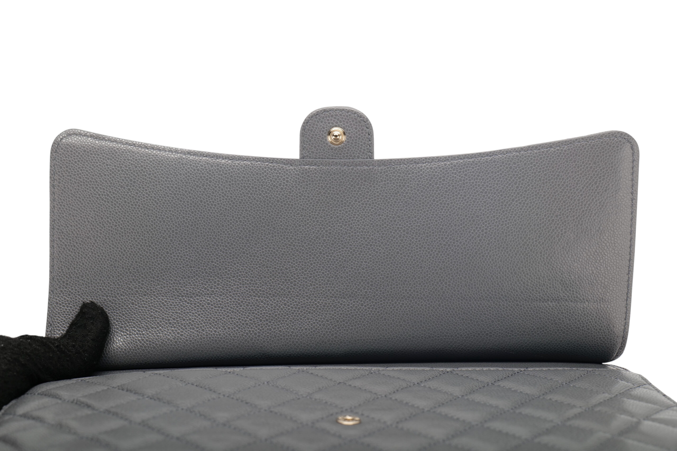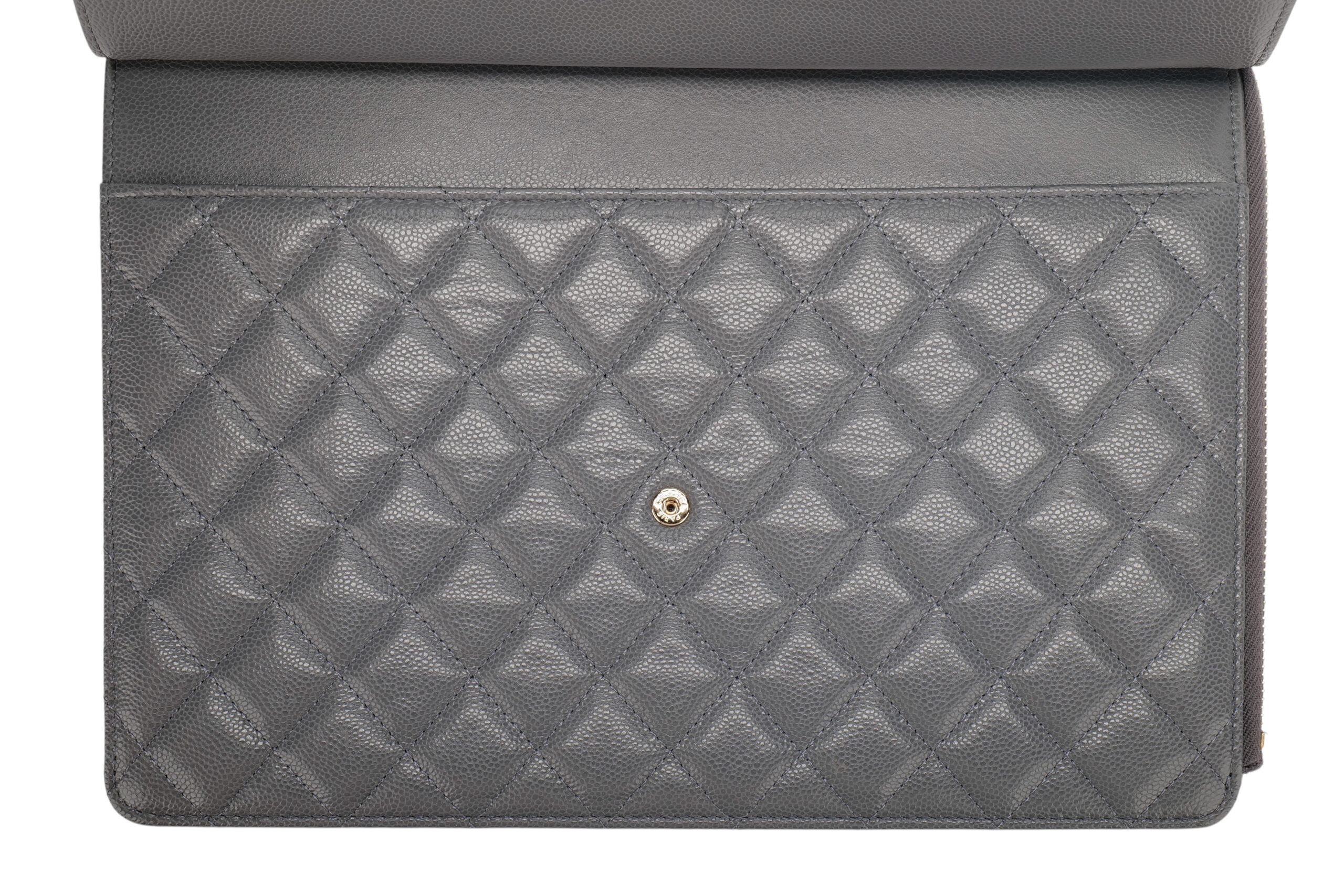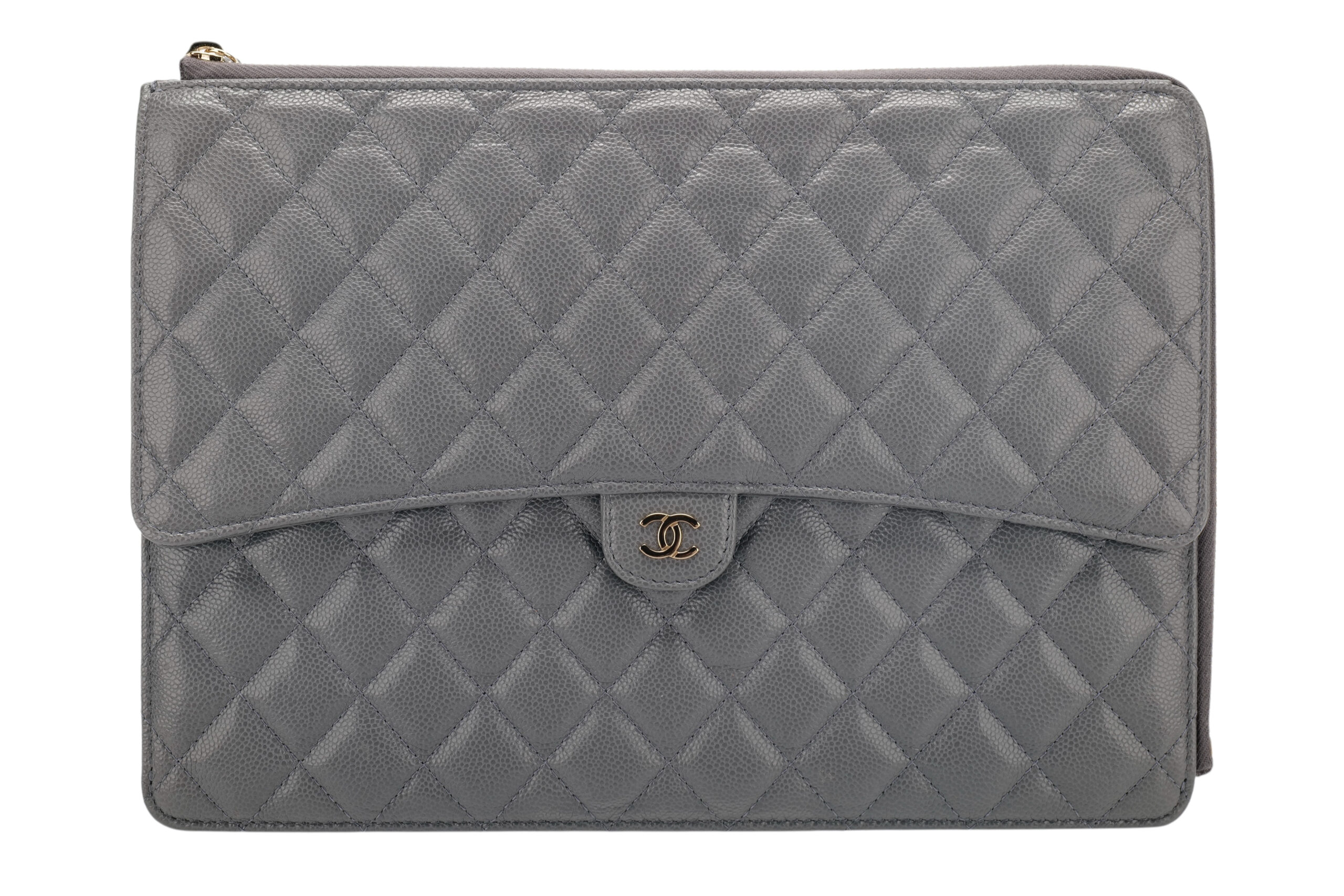 Chanel Classic Grey Caviar Quilted Leather Clutch, Gold Hardware