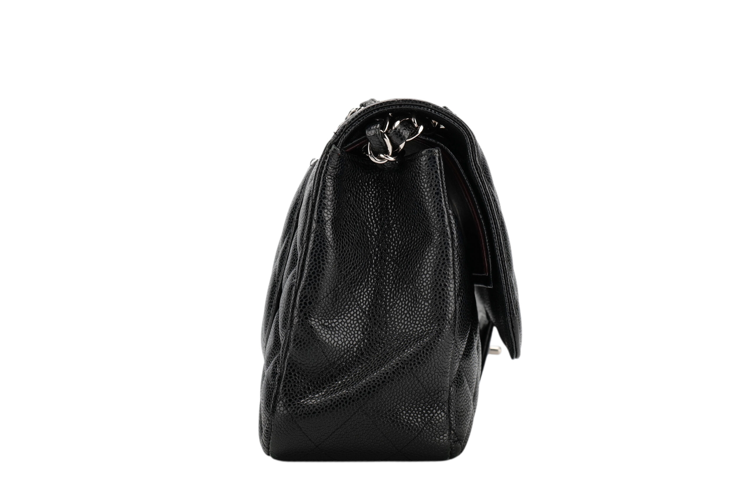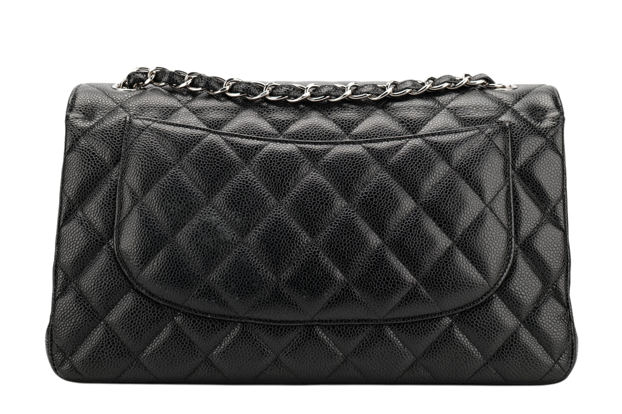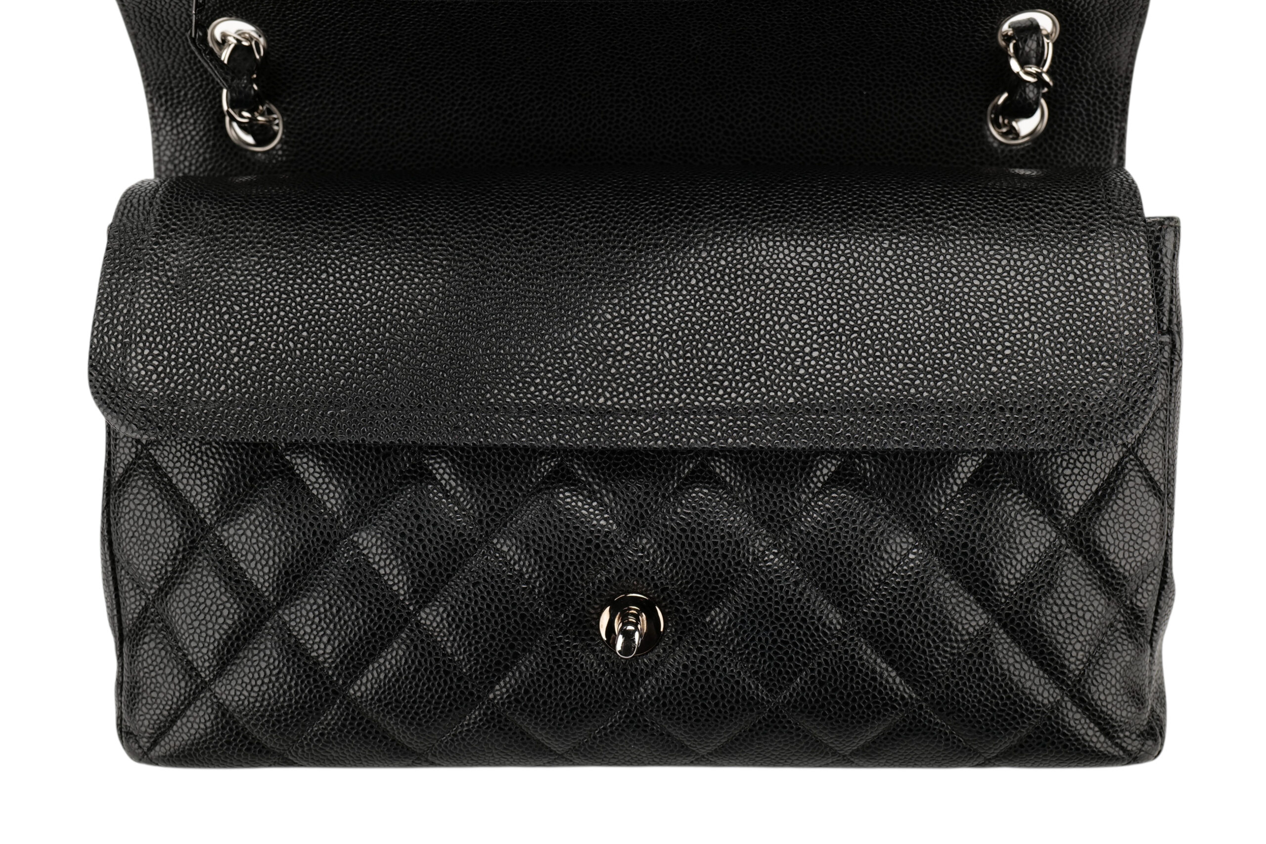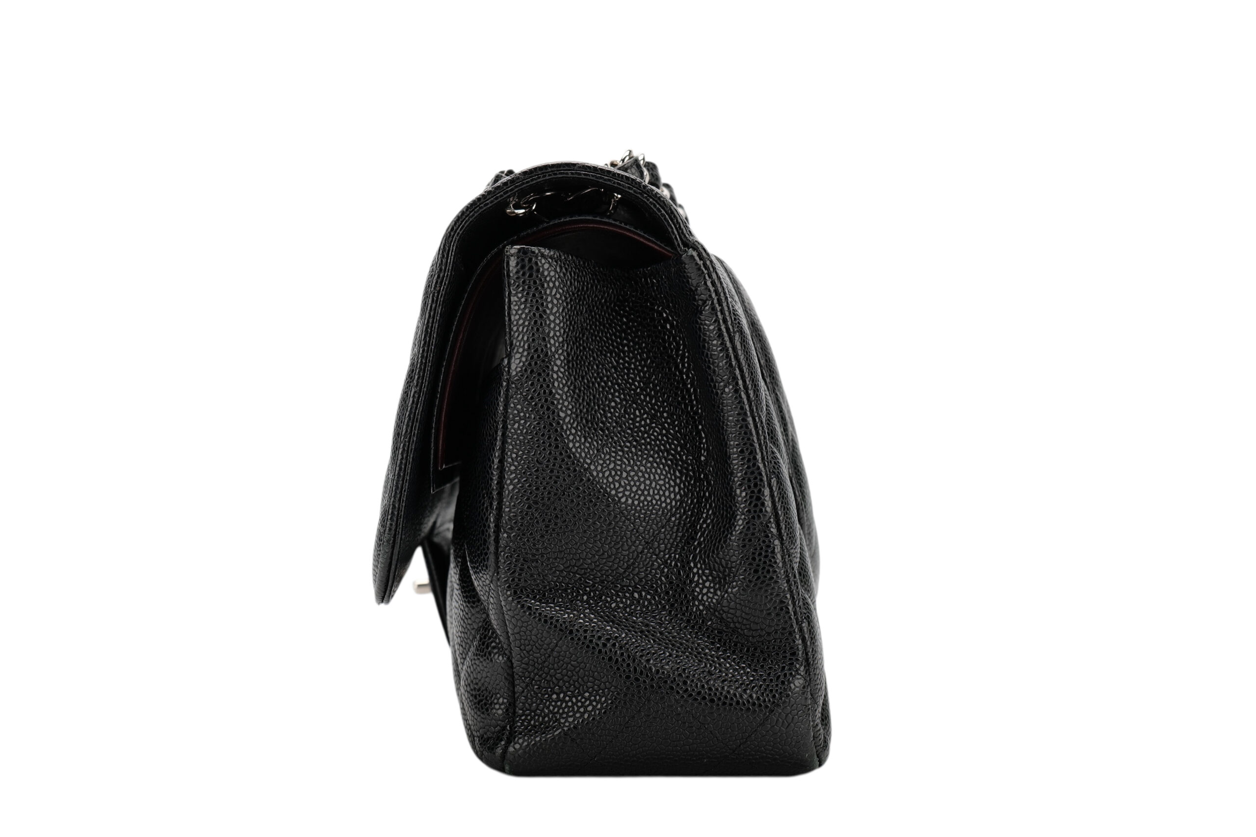 Chanel Classic Jumbo Double Flap Black Caviar Quilted Leather, Silver Hardware