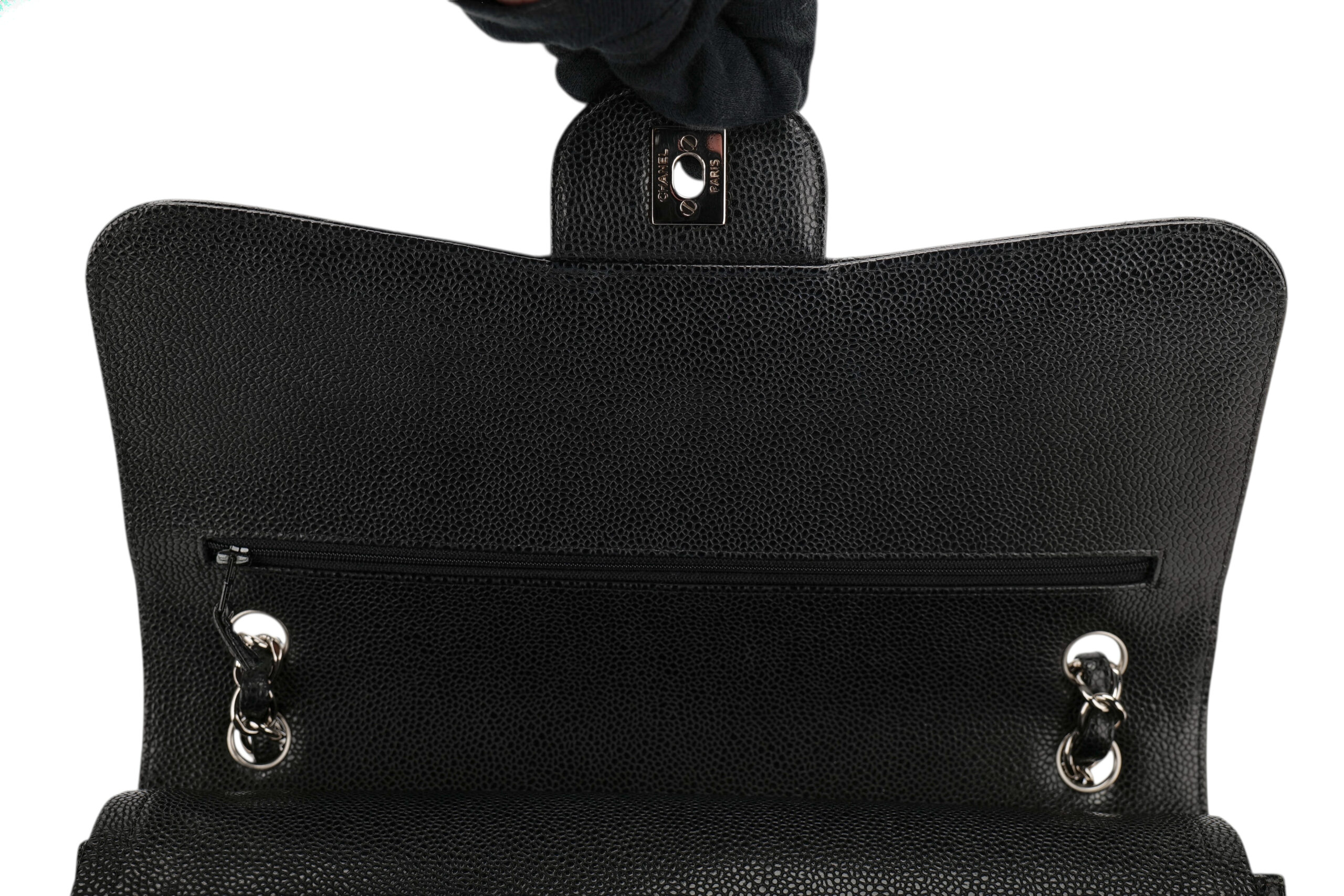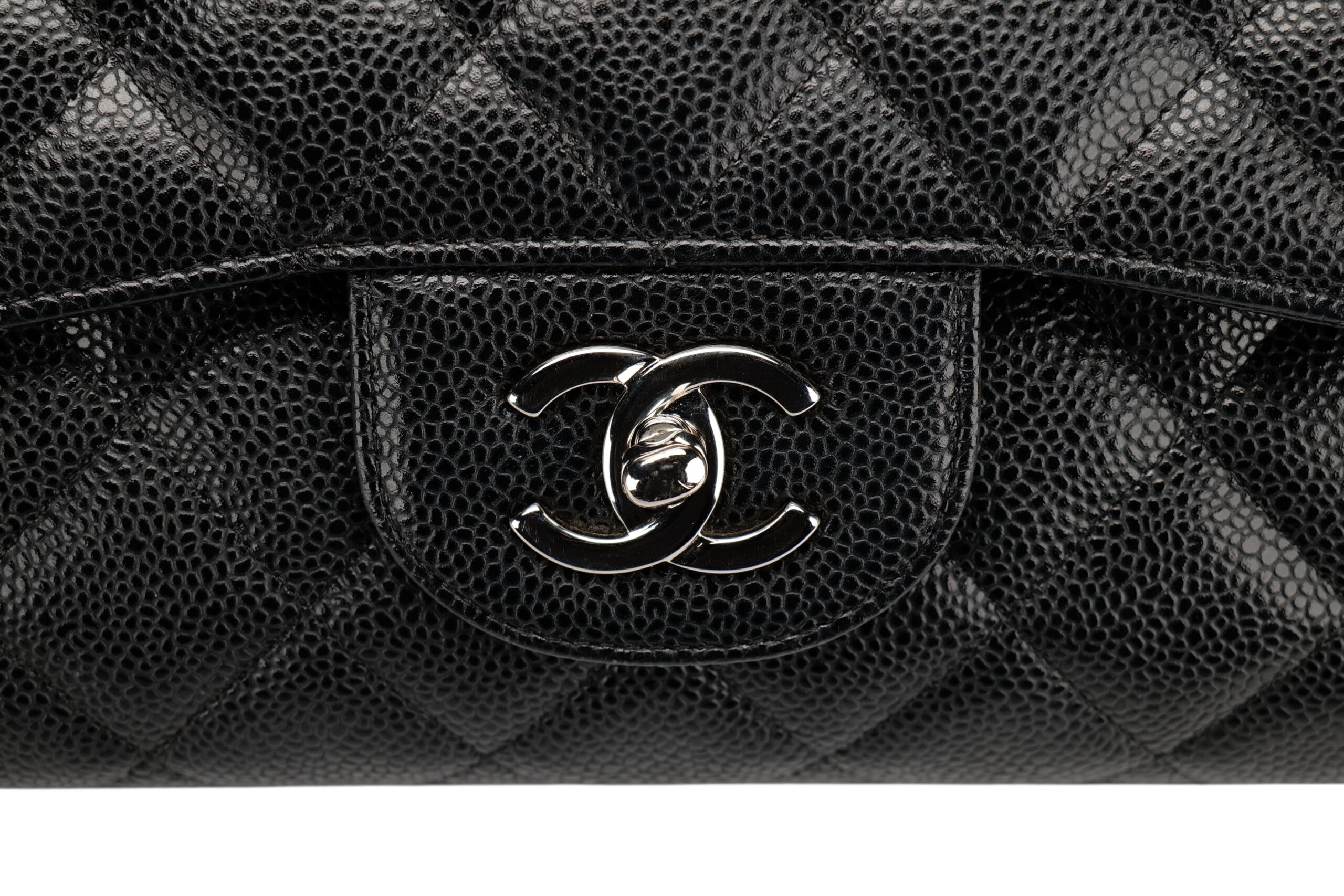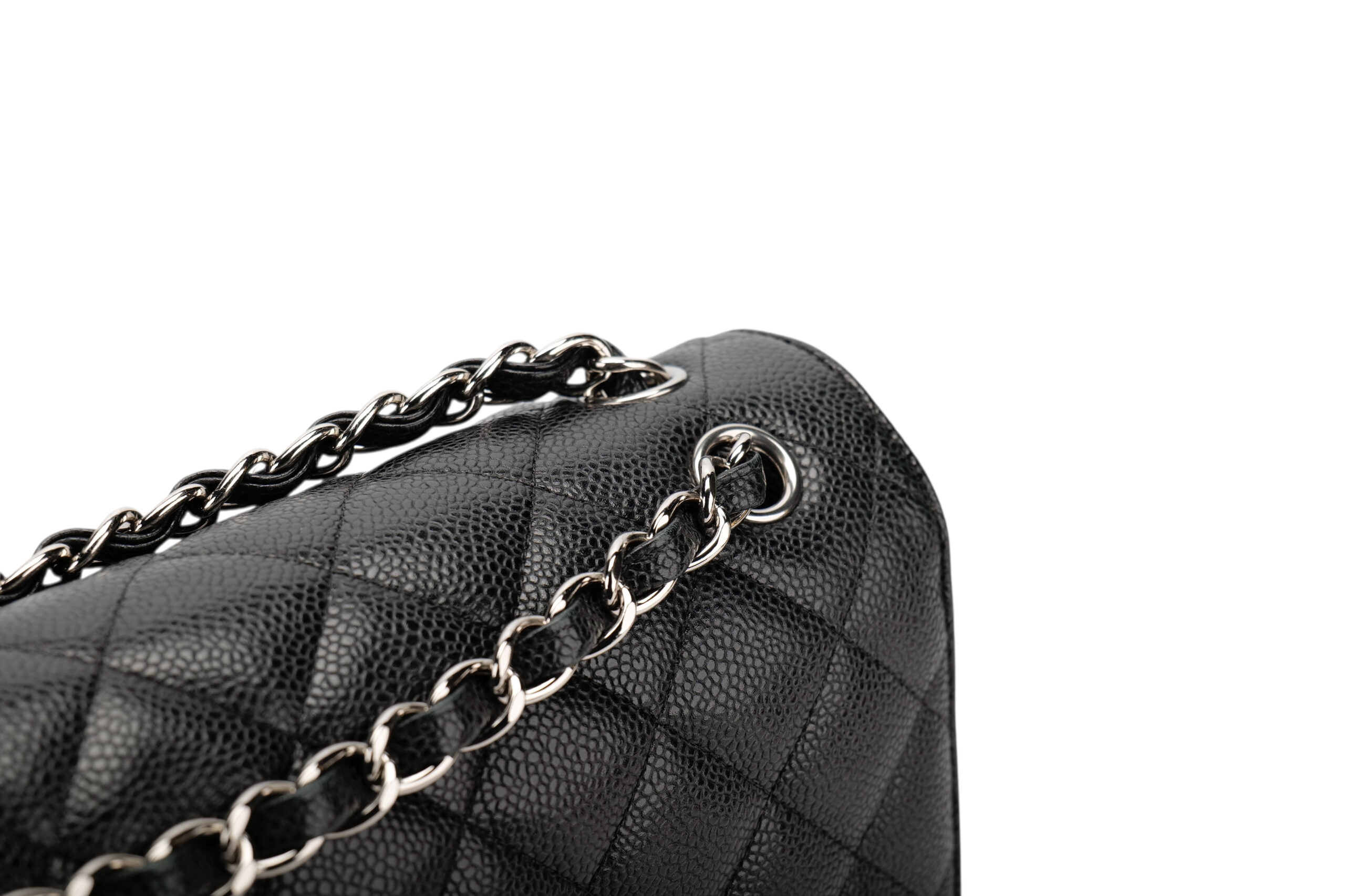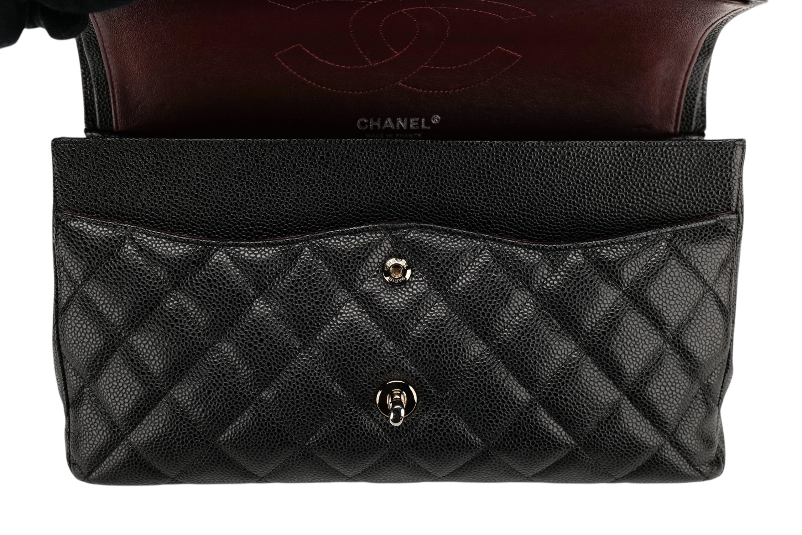 Chanel Classic Jumbo Double Flap Black Caviar Quilted Leather, Silver Hardware