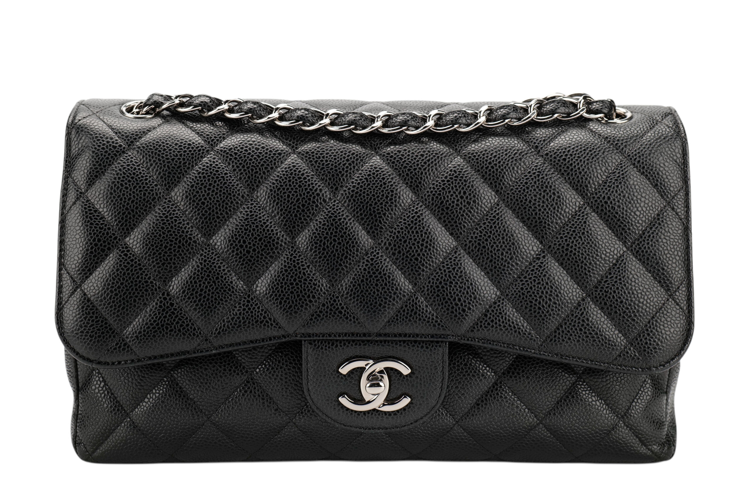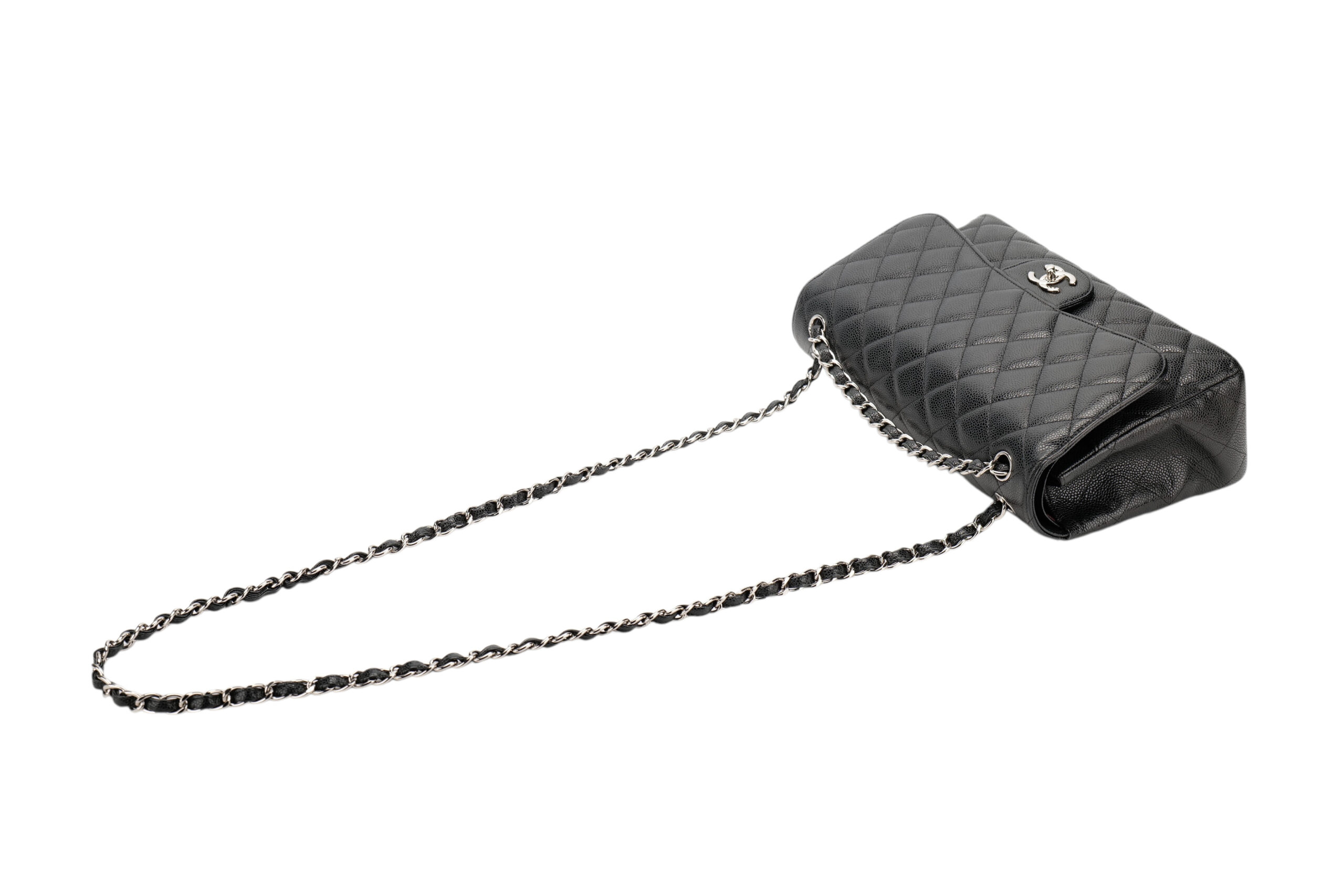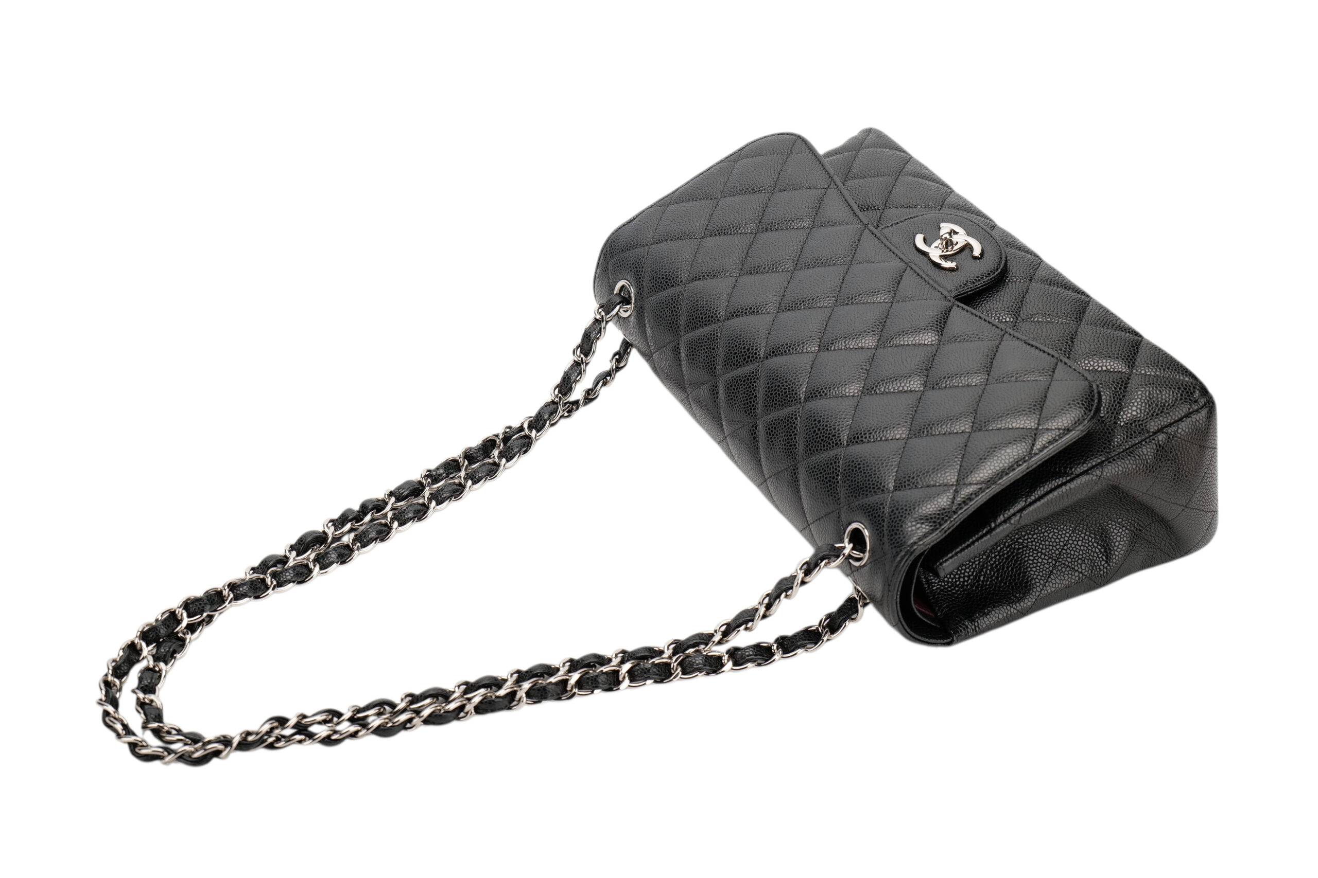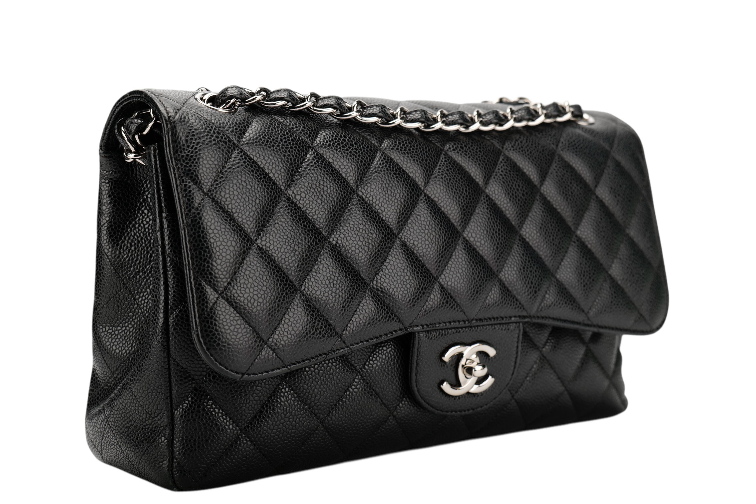 Chanel Classic Jumbo Double Flap Black Caviar Quilted Leather, Silver Hardware