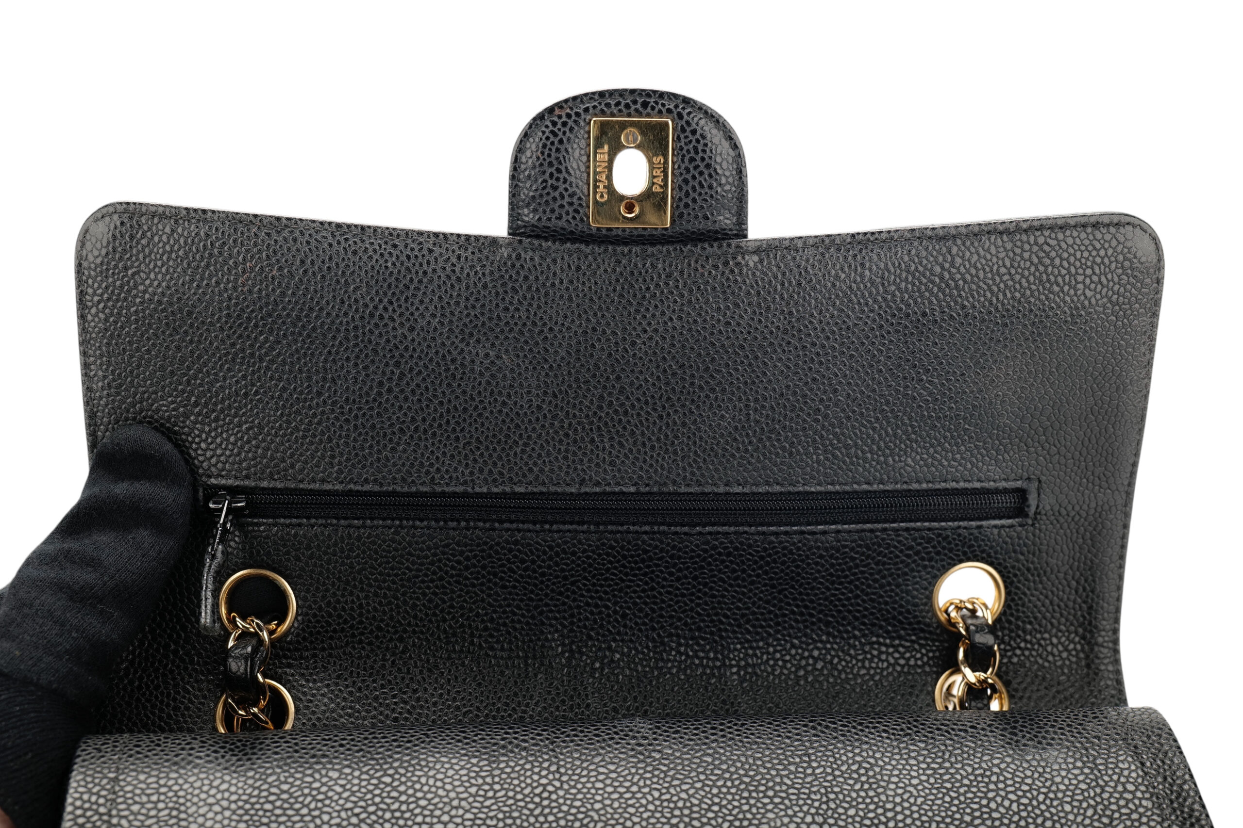 Chanel Classic Medium Double Flap Black Caviar Leather, Gold Hardware