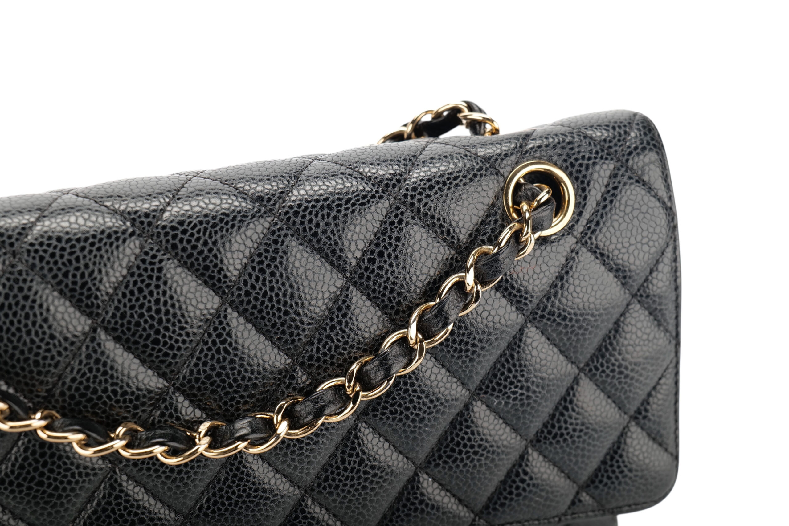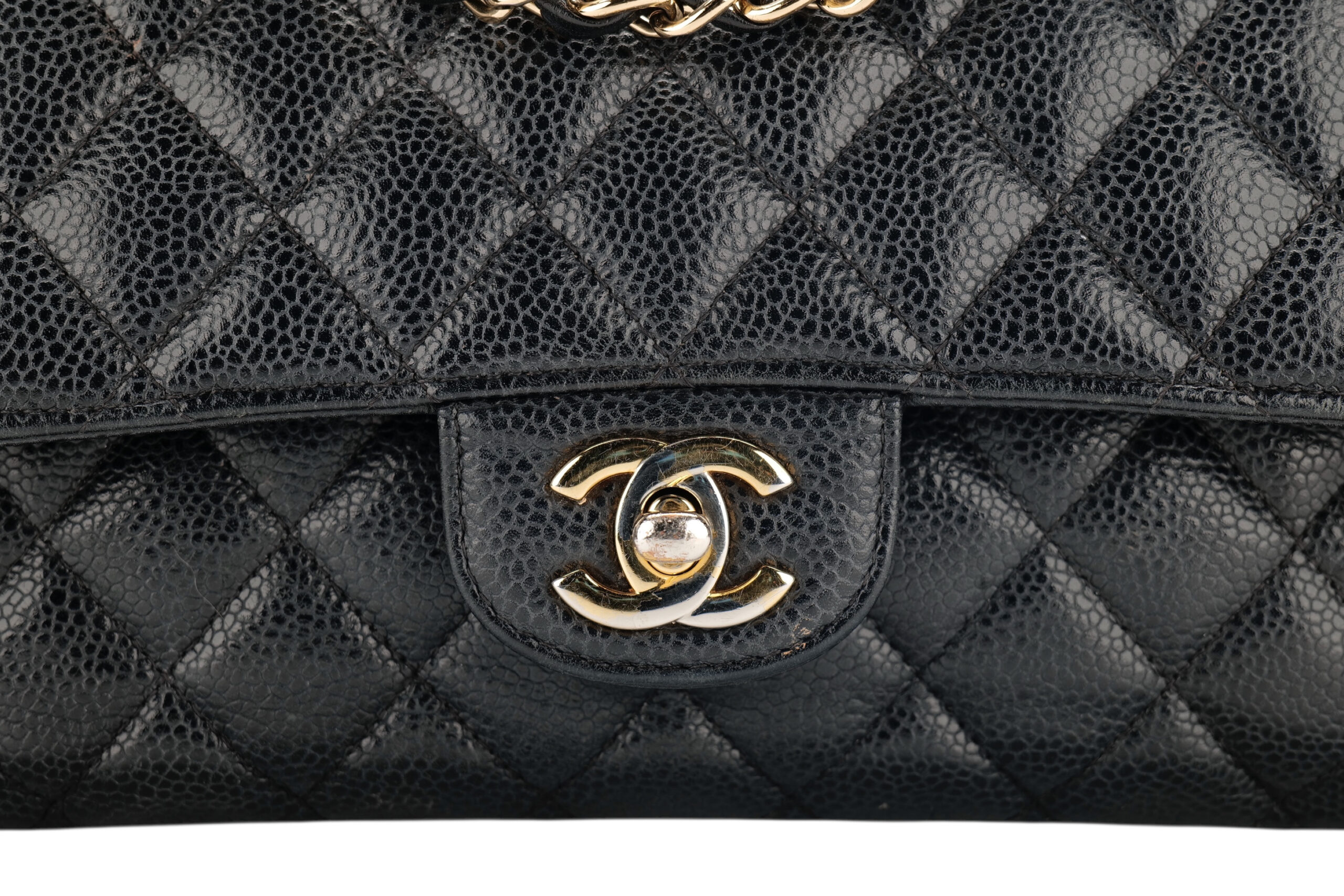 - Black quilted caviar leather