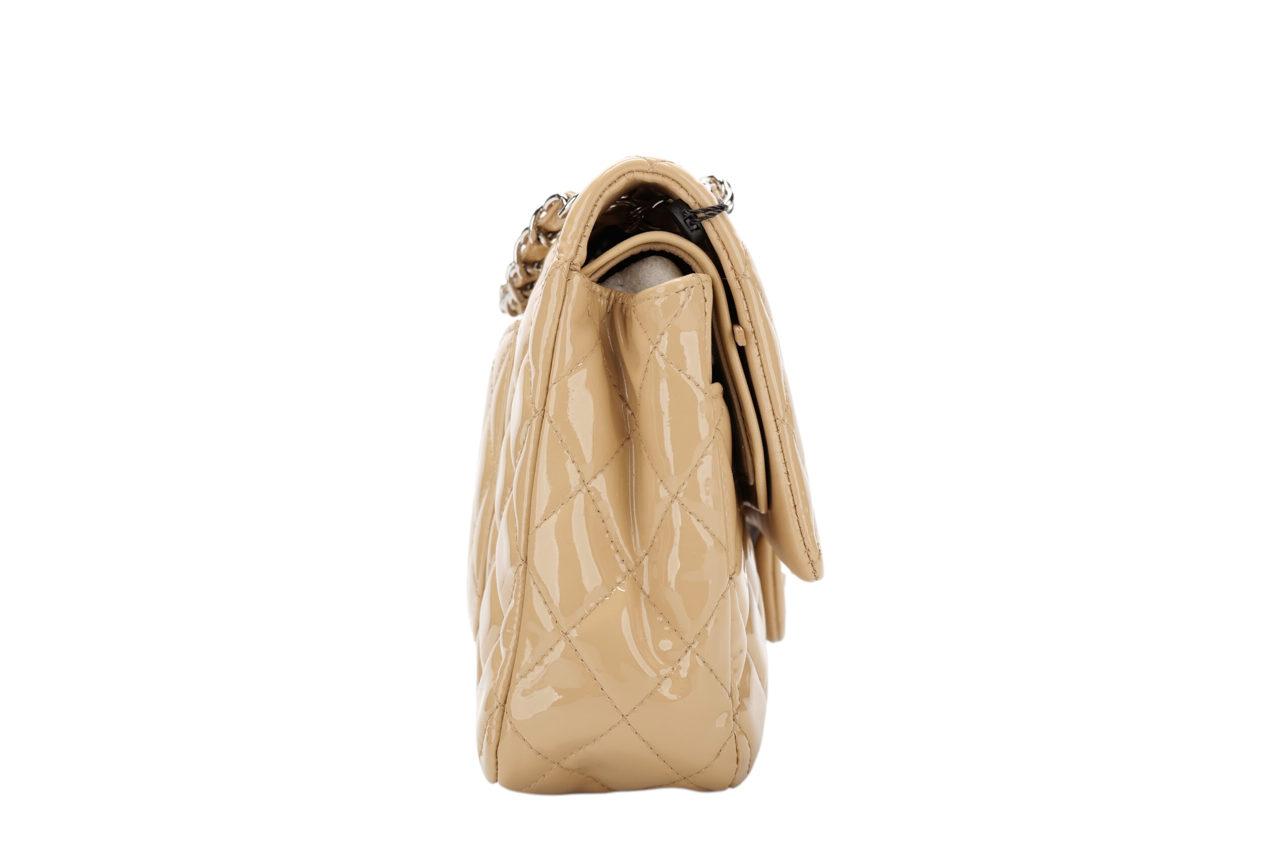 - Beige quilted patent leather