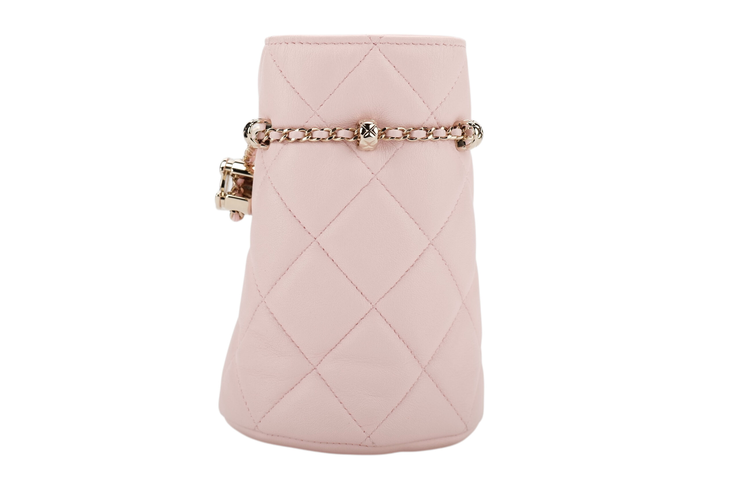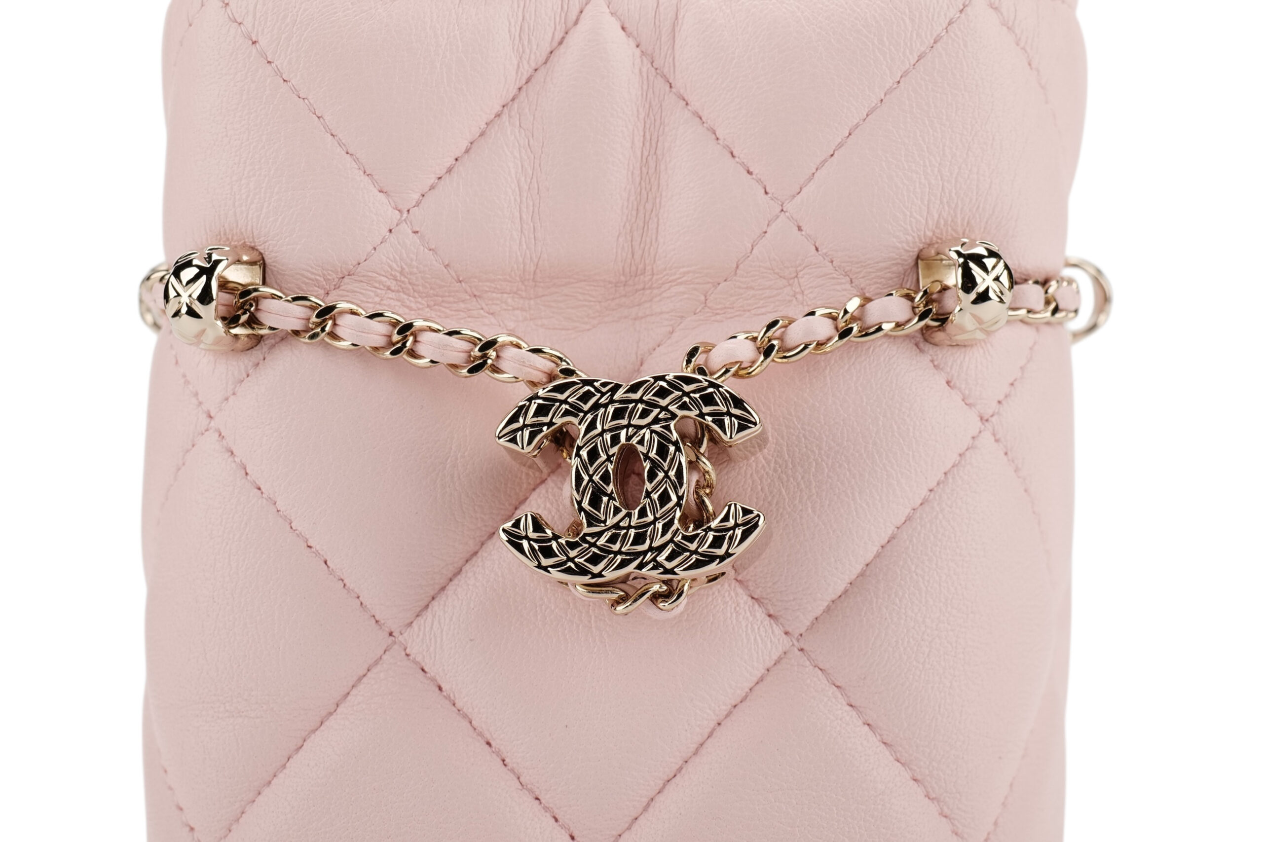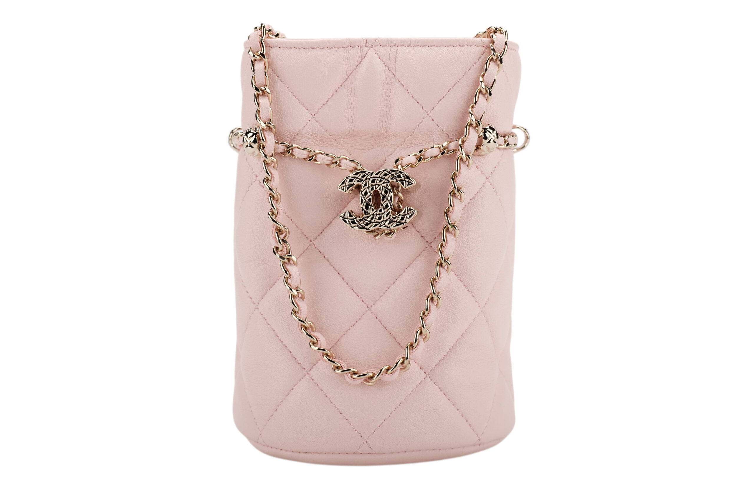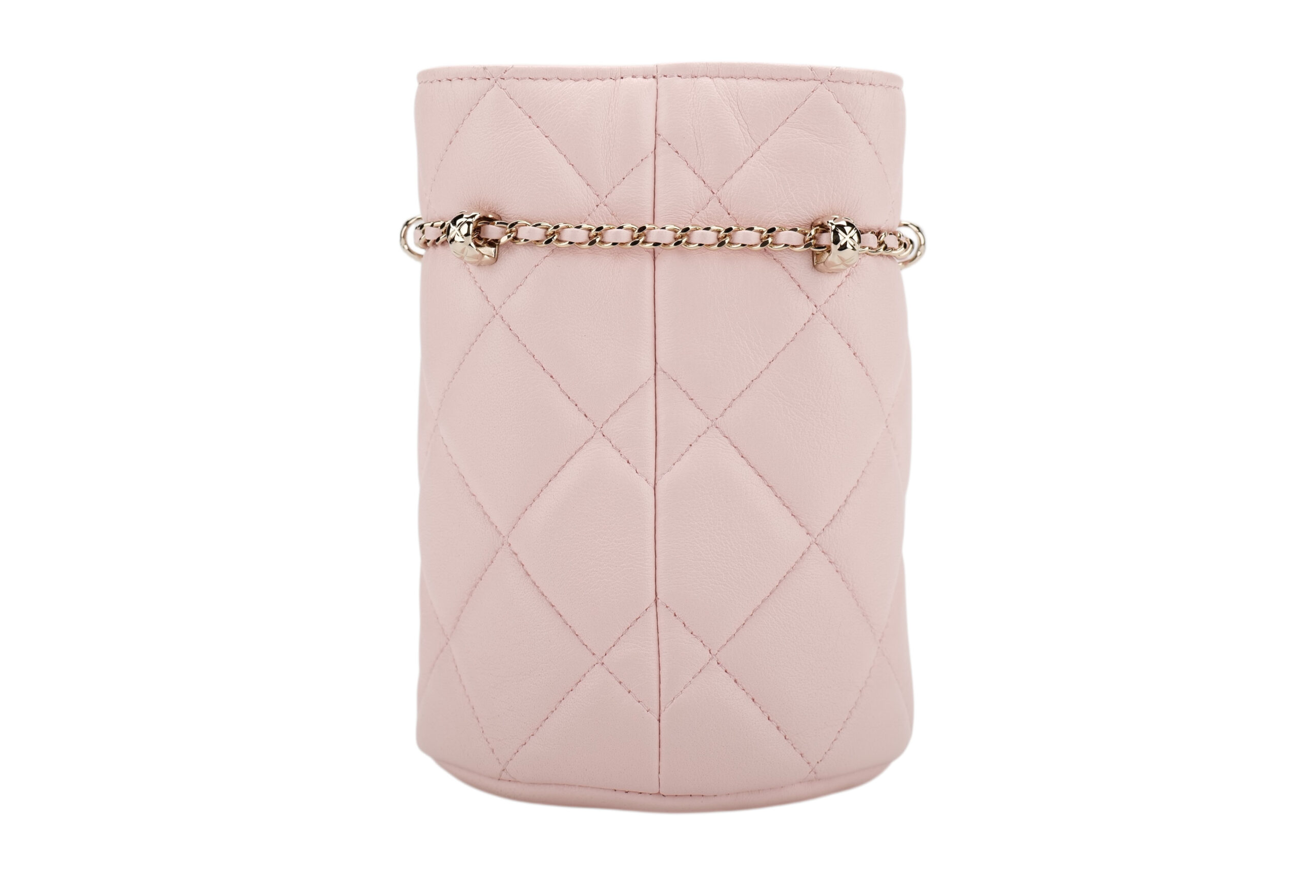 Chanel Mini Bucket Blush Pink Diamond Quilted Lambskin Leather, Gold hardware