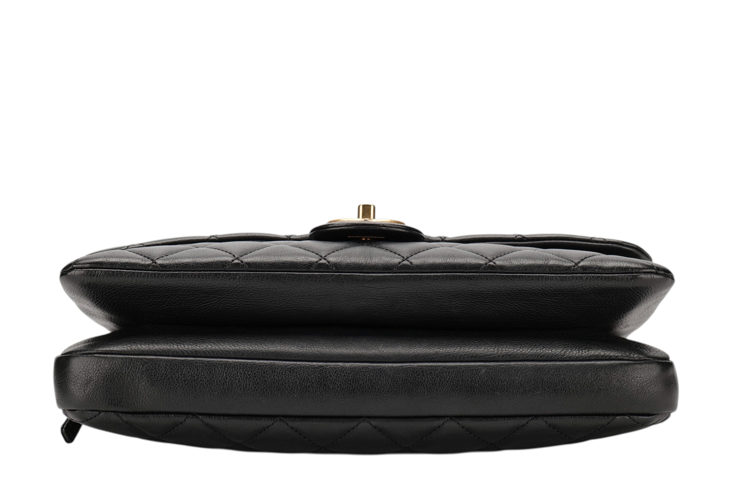 Chanel Vintage Medium Quilted Black Leather Rear Zip Pocket Flap Bag, Gold Hardware