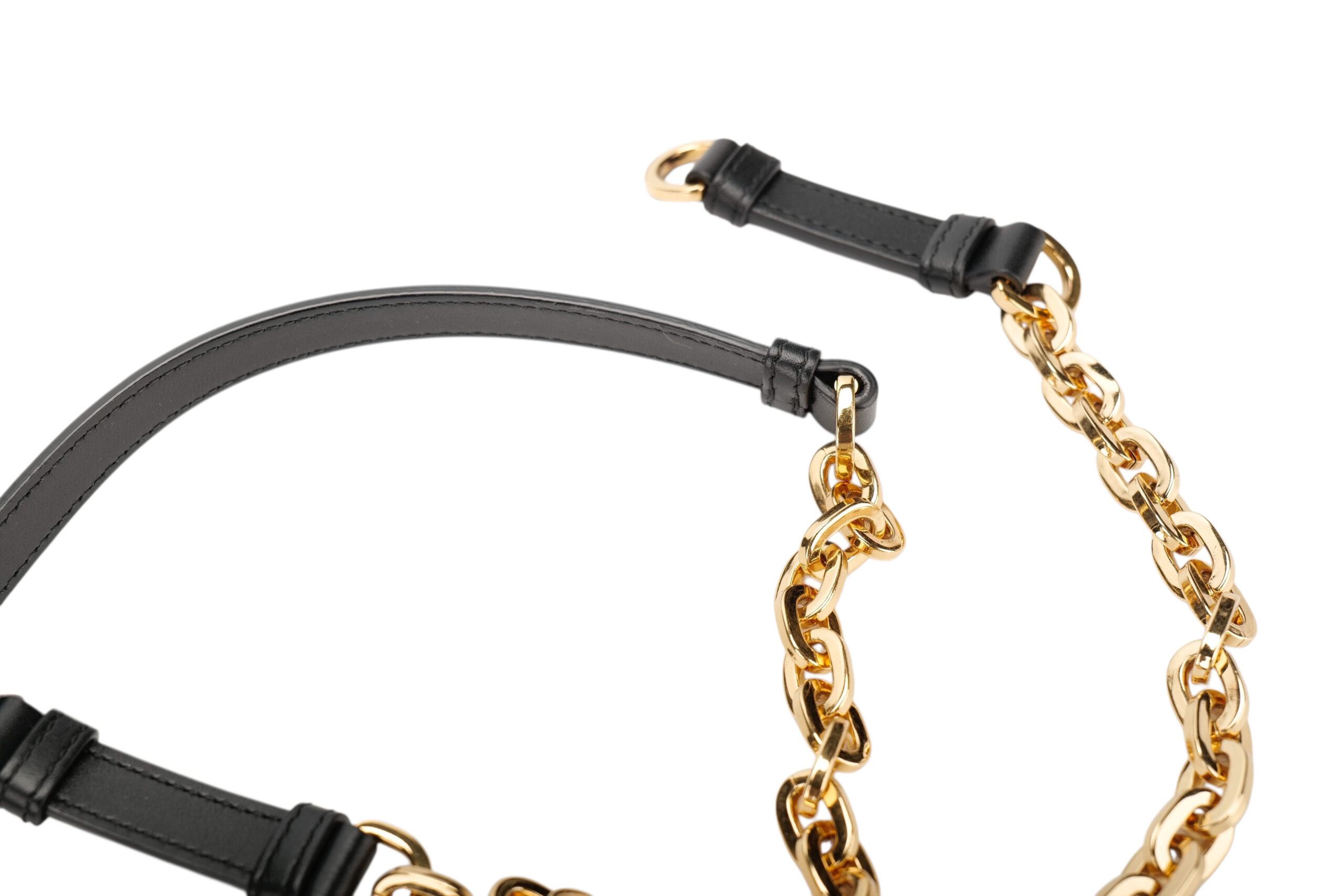 - Removable chain shoulder strap with adjustable leather insert