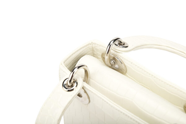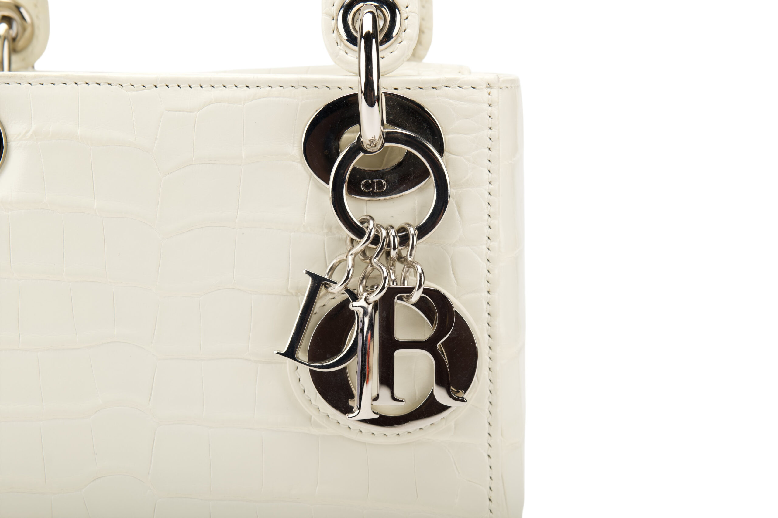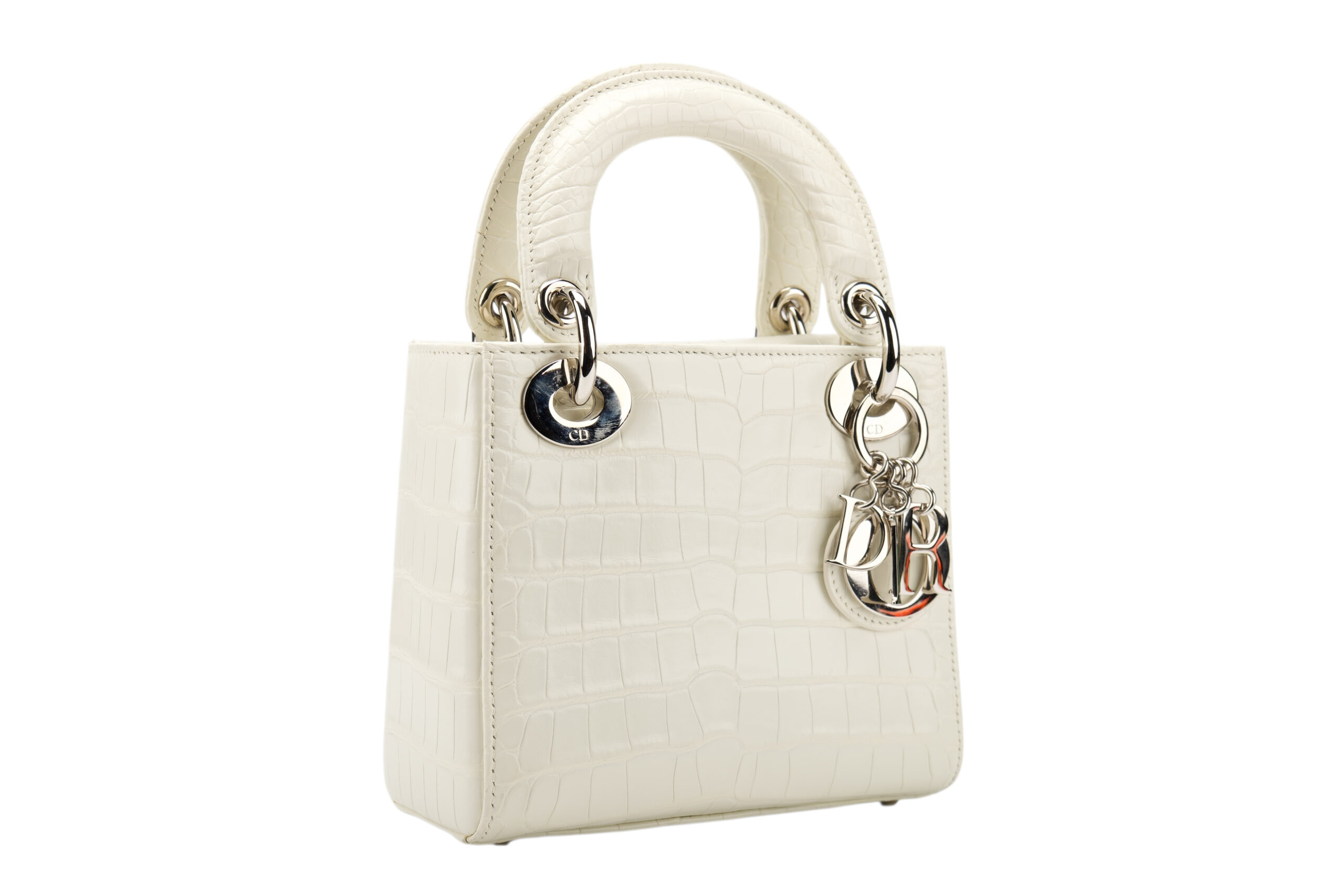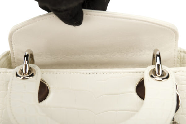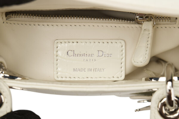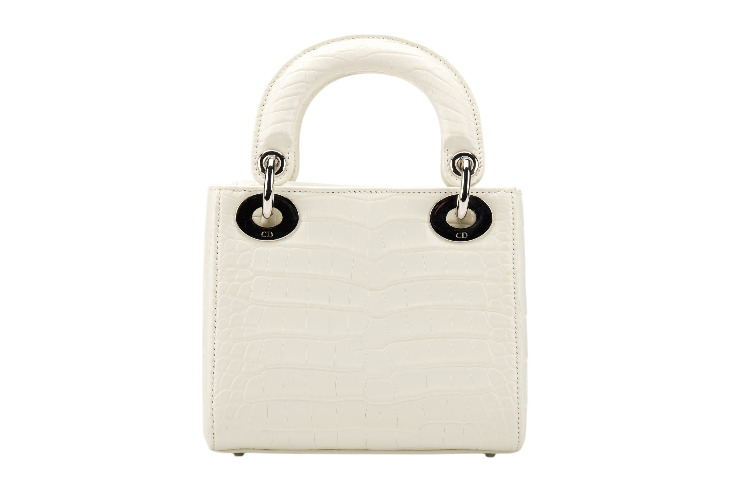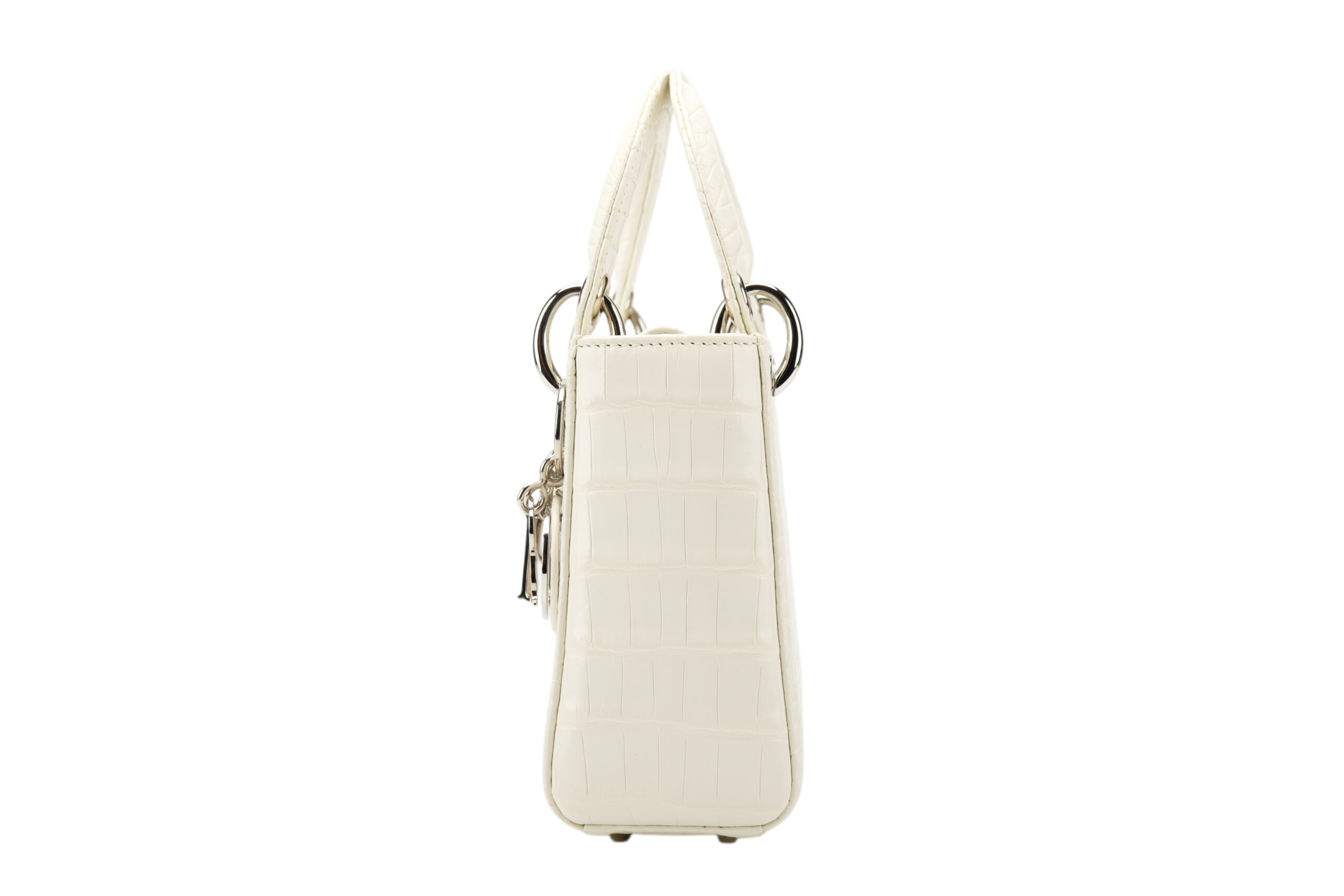 Dior Lady Dior Mini White Exotic Leather, Silver Hardware