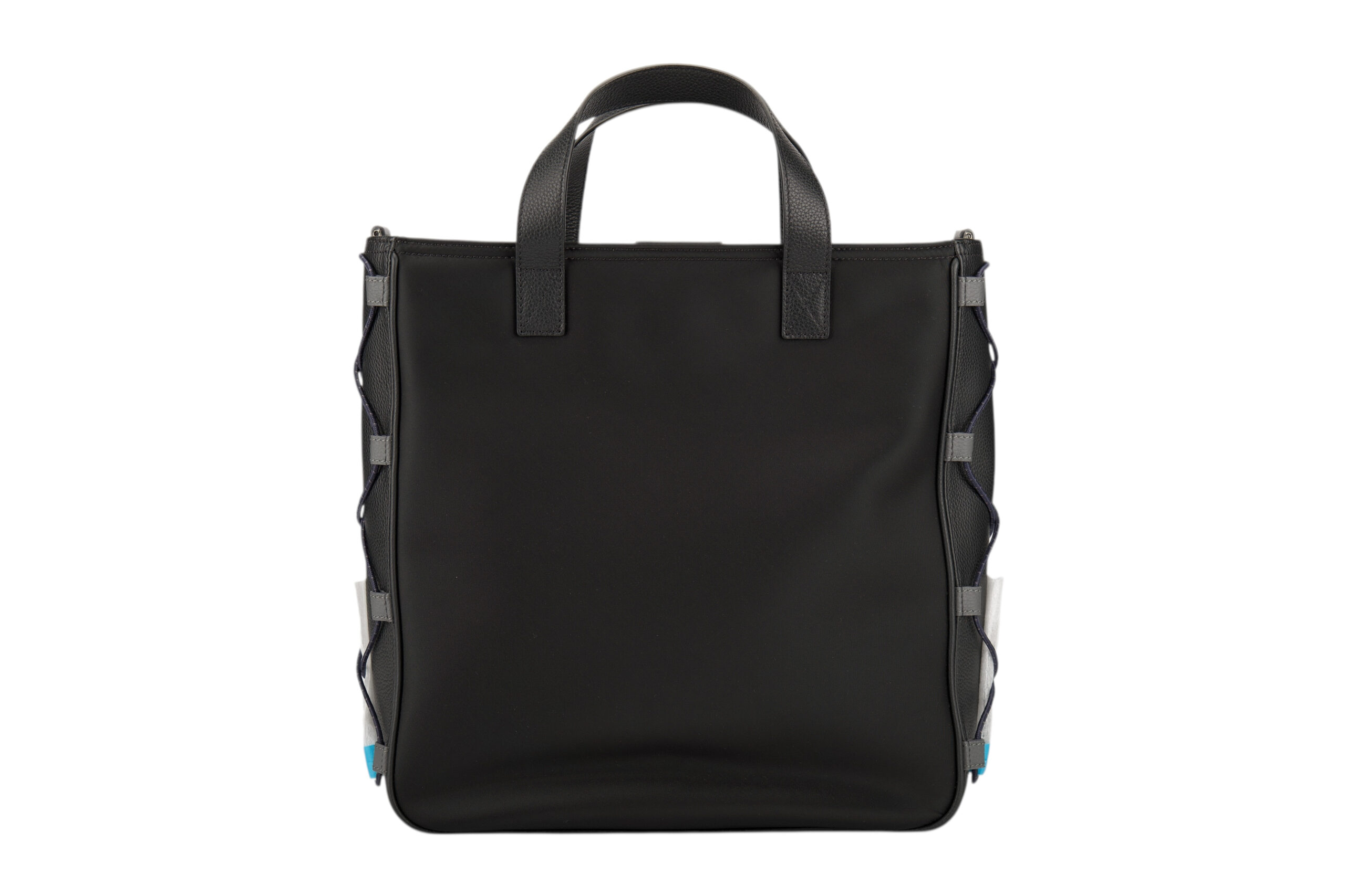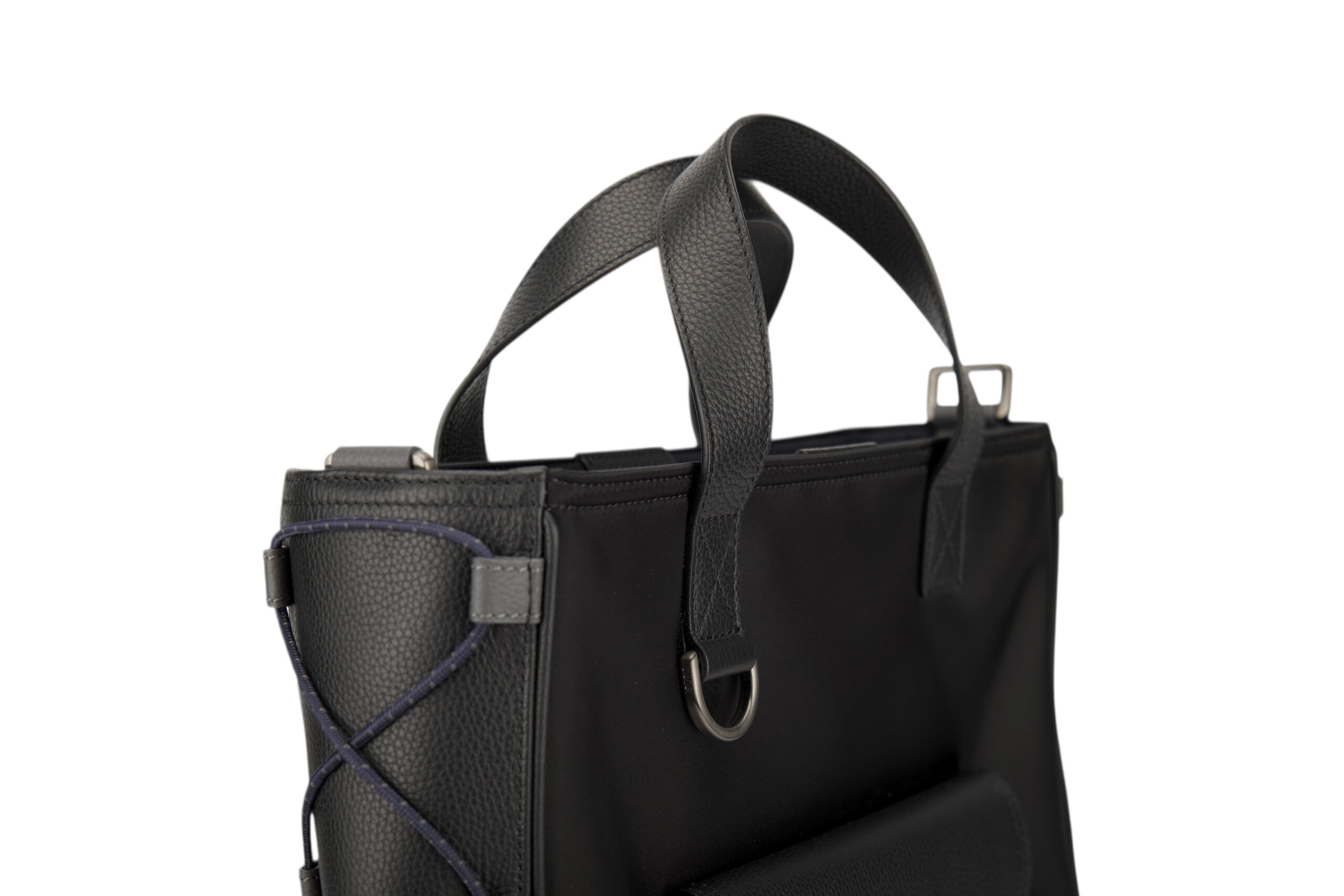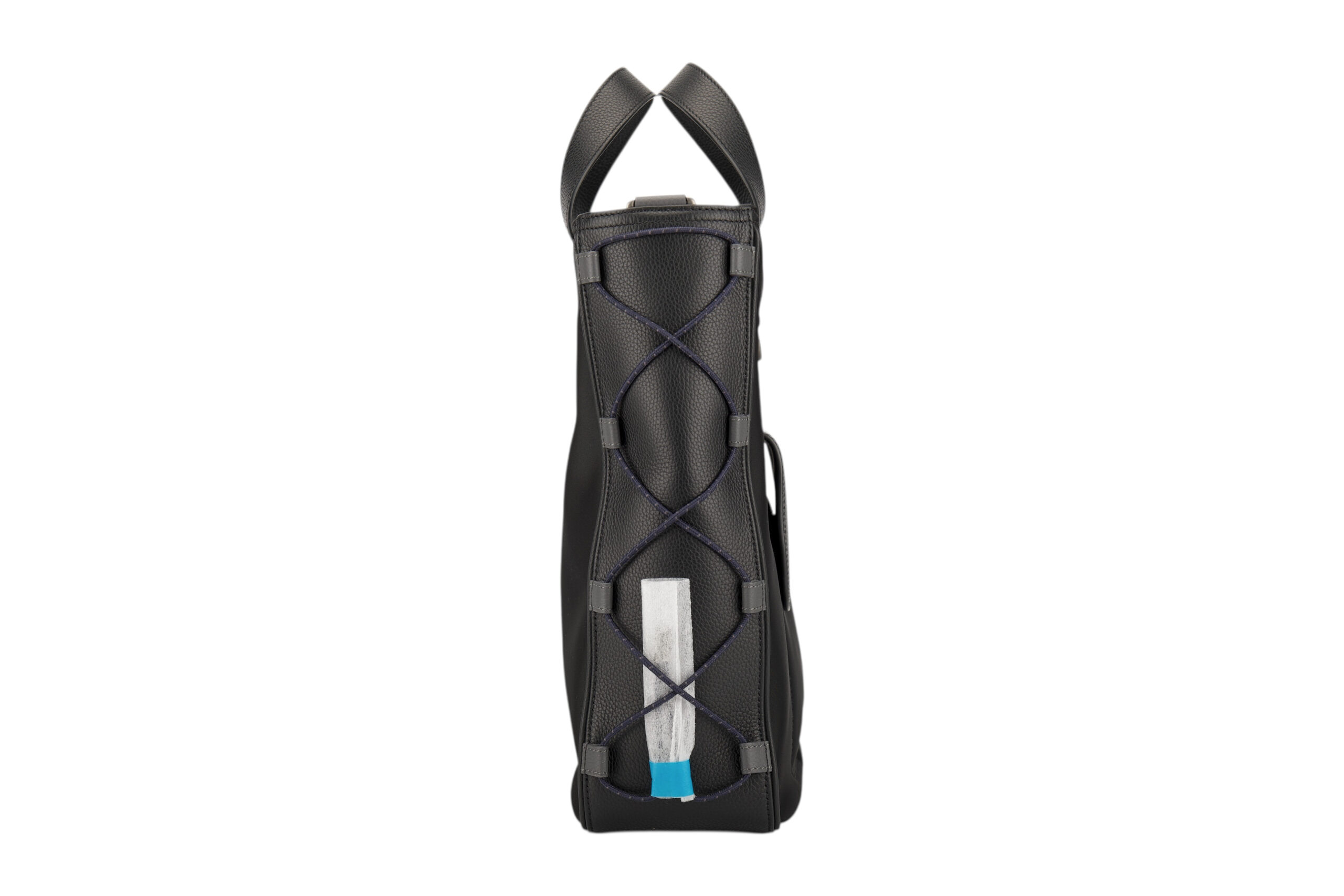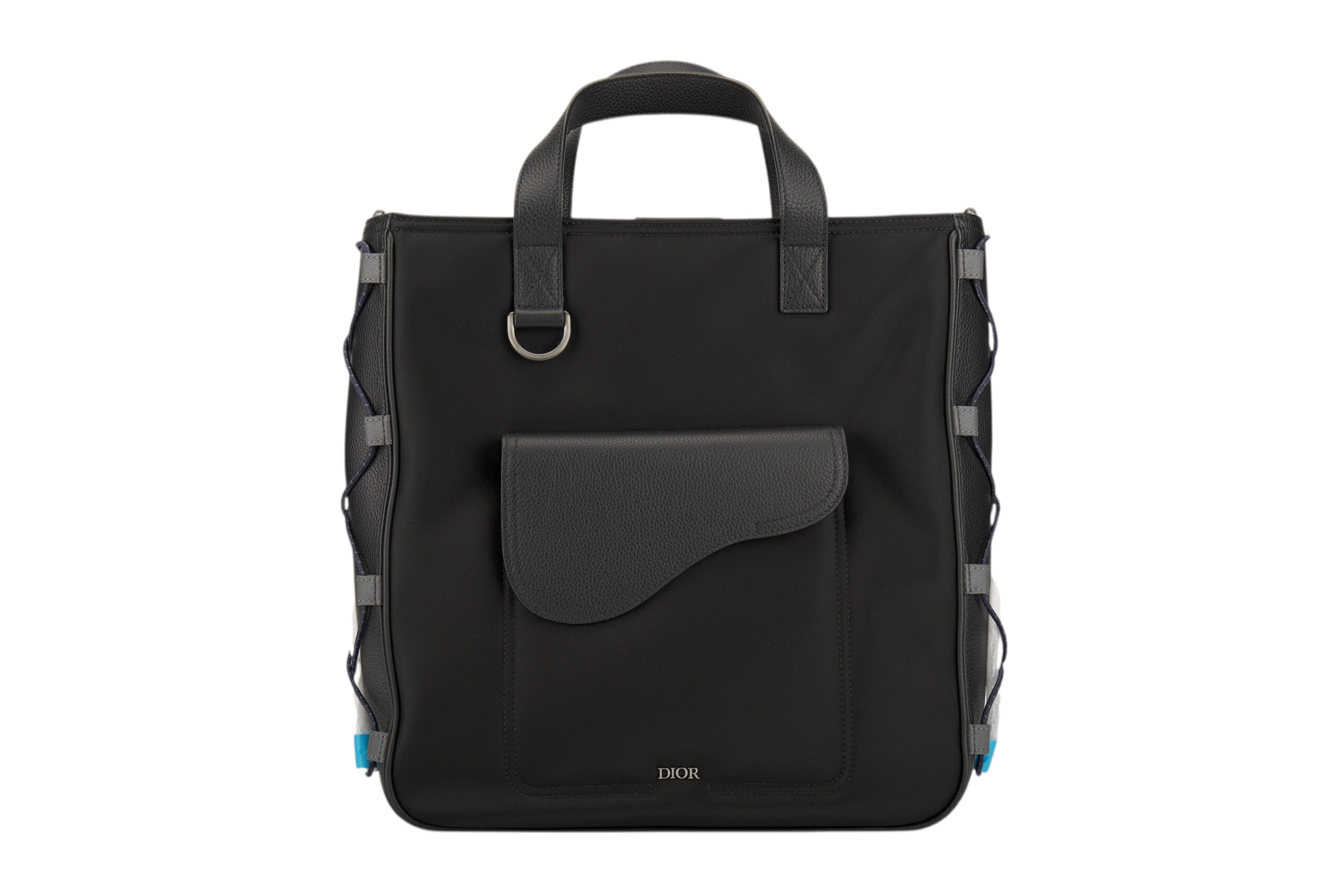 The Dior North South Medium Tote in black canvas and leather is a masterclass in functional luxury with an urban edge. This tote pairs structured, durable canvas with refined pebbled leather detailing, inlacing an asymmetrical front flap pocket that lends a bold, architectural feel. The sleek matte black hardware, including the subtle DIOR logo at the base, keeps the aesthetic minimal and contemporary, while the double top handles offer a solid grip for daily wear. The open-top design and generous interior make it ideal for work and travel, balancing capacity with understated sophistication