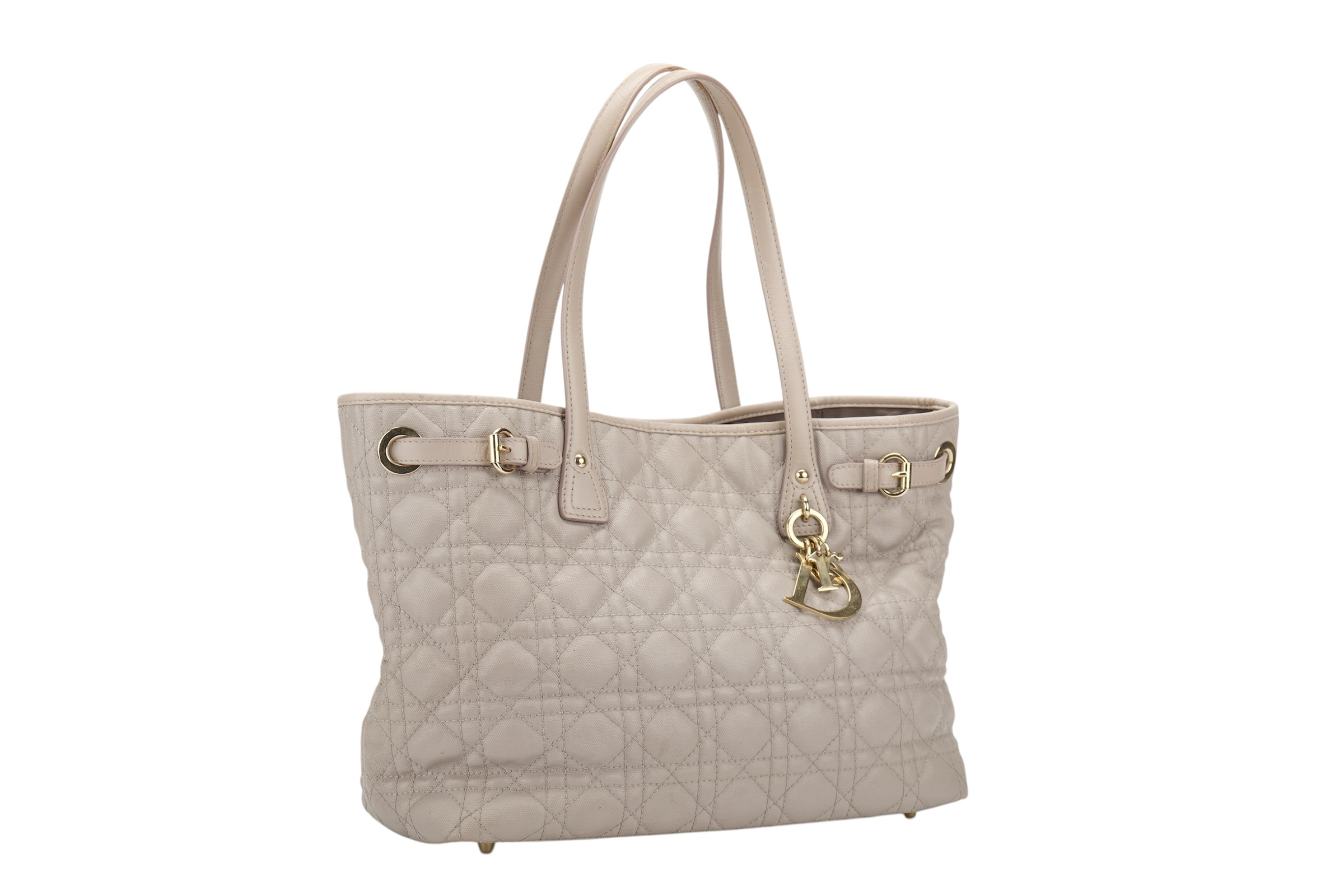 This Christian Dior Grey Cannage Coated Canvas Panera Tote Bag is the one for you!